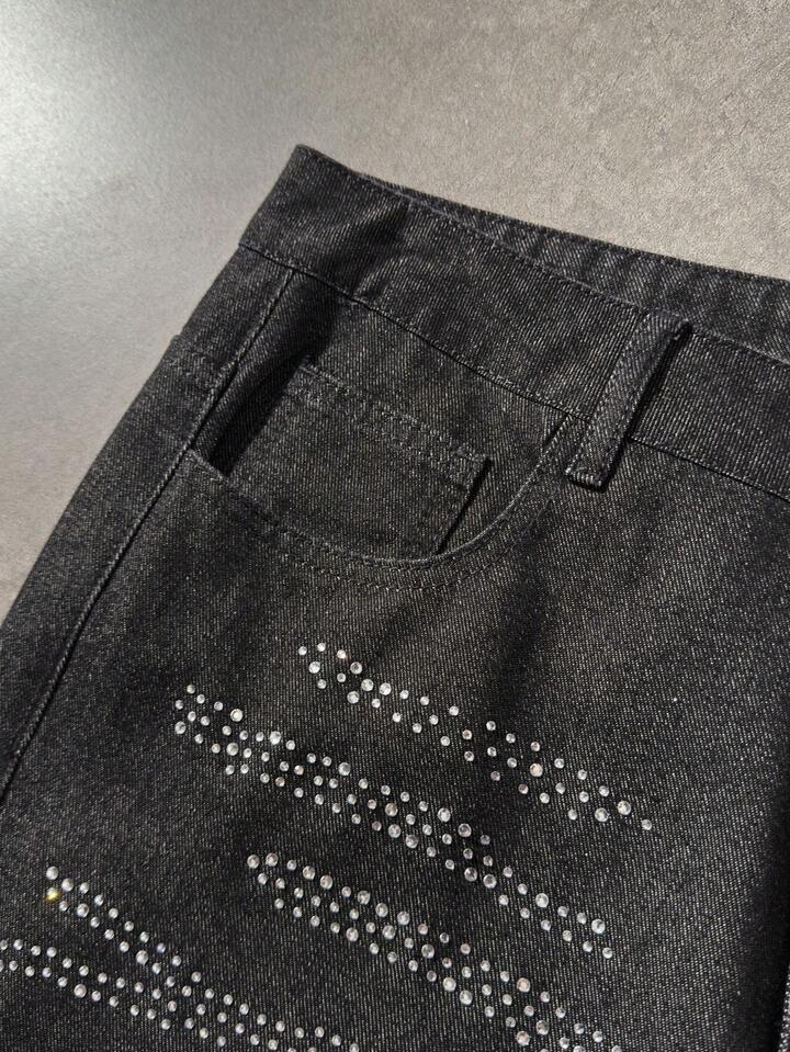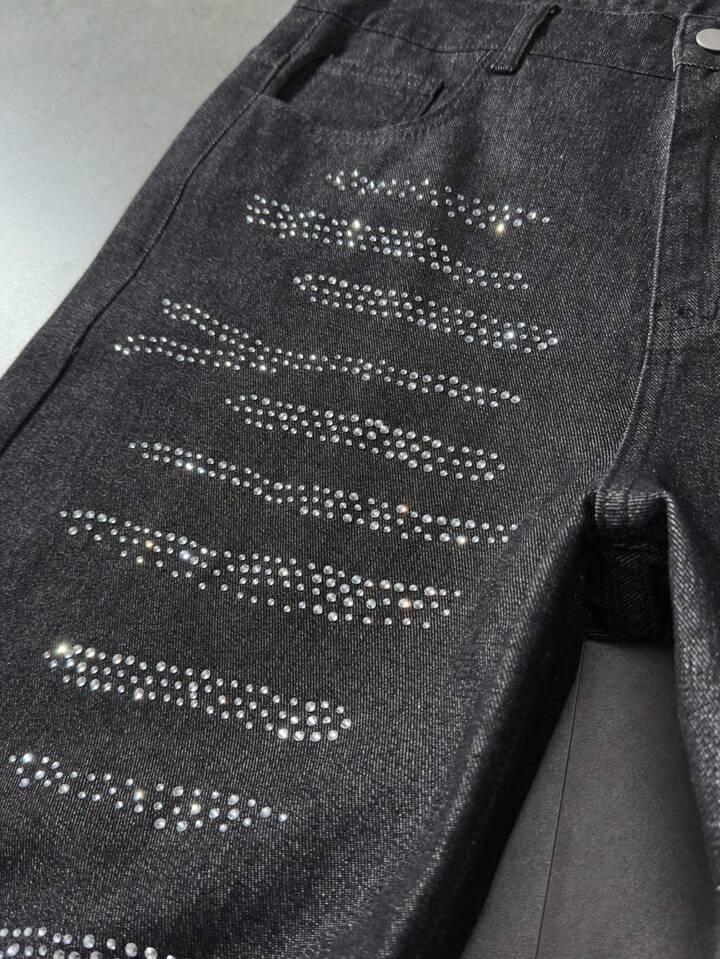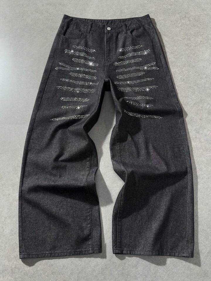 Men's Rhinestone Embellished Pocket Wide Leg Loose Casual Jeans
