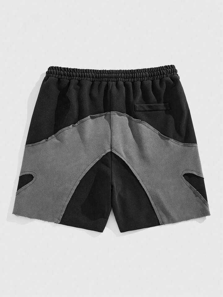 Men's Solid Color Patchwork Lace-Up Casual Shorts, Everyday Wear