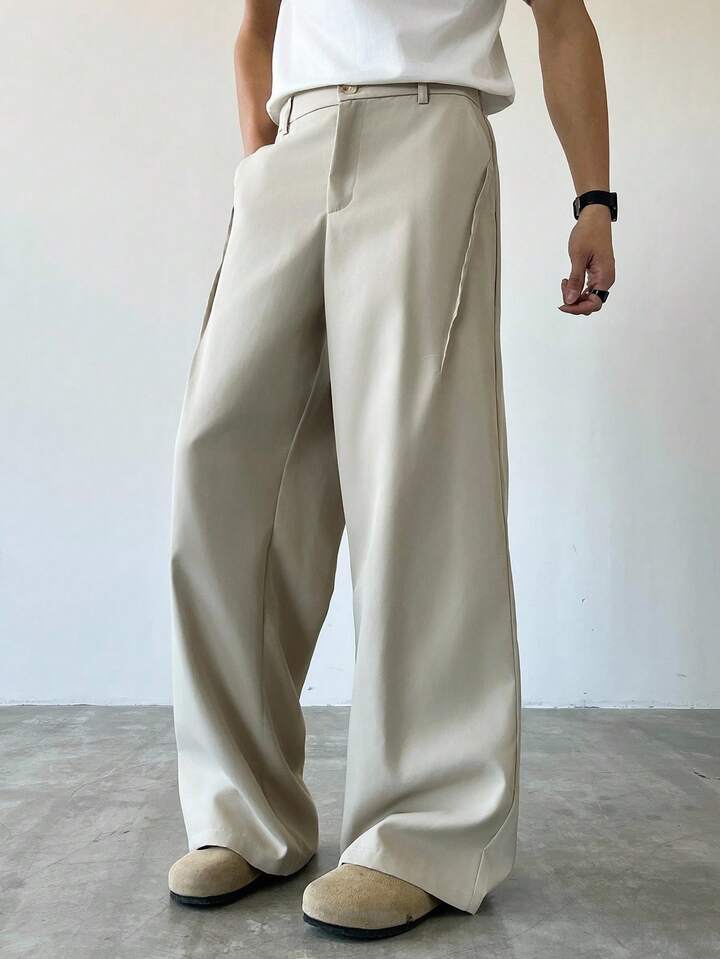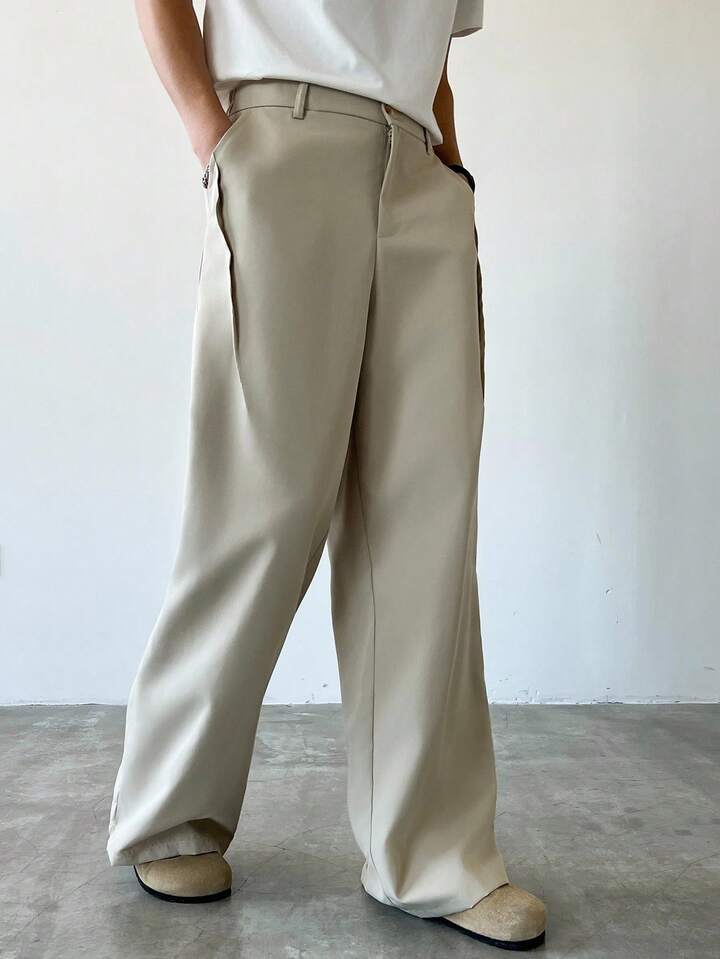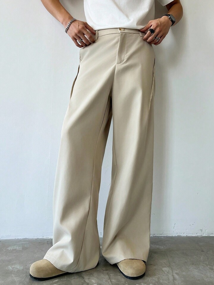Men's Solid Color Pocket Casual Slim Flare Leg Pants, Fall