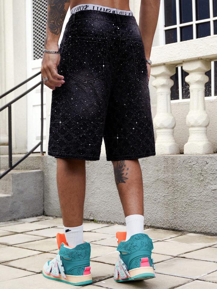 Men's Street Life Rhinestone Embellished Denim Shorts
