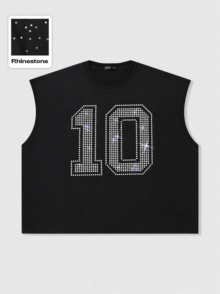 Men's Street Life Sparkling Diamond Number Decorated Loose Short Top, Rave