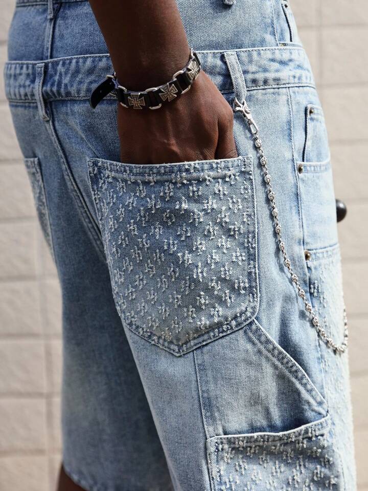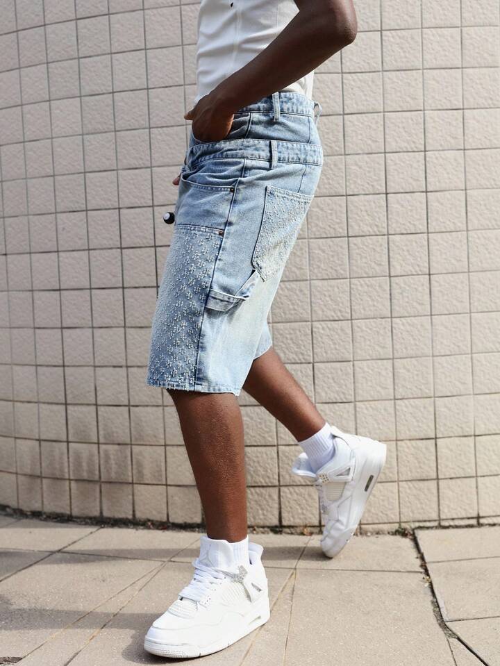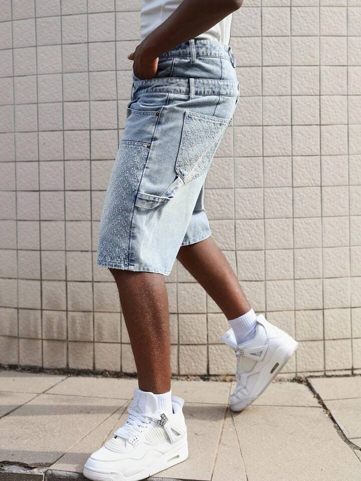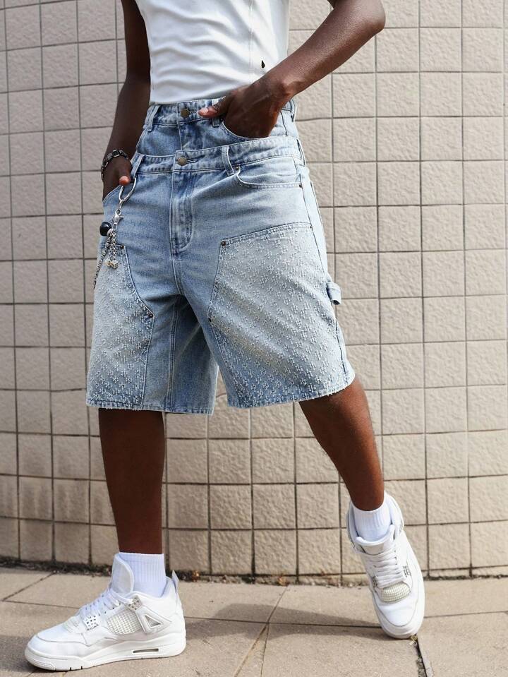 Men's Street Life Washed Denim Double-Layer Waistband Shorts