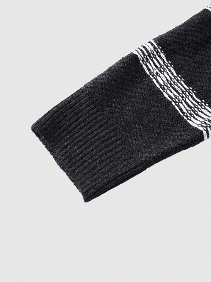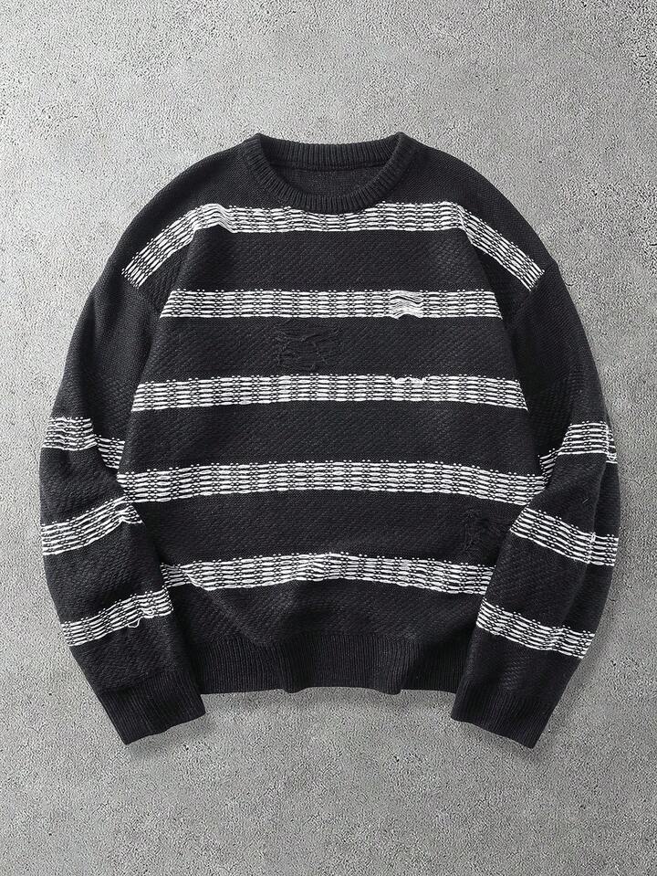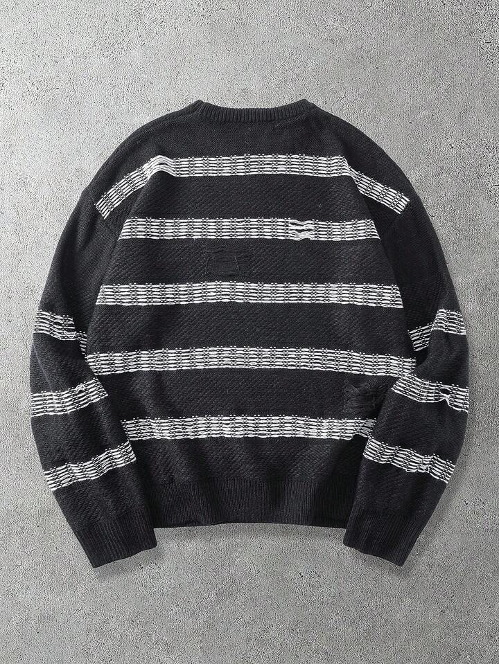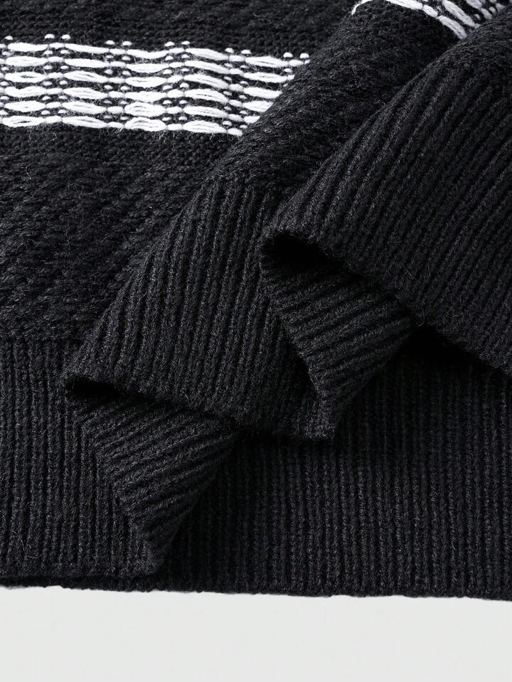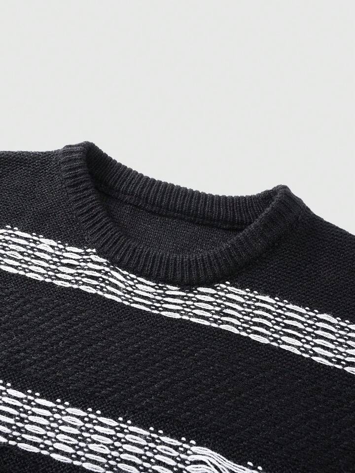 Men's Striped Pattern Crew Neck Long Sleeve Pullover Sweater