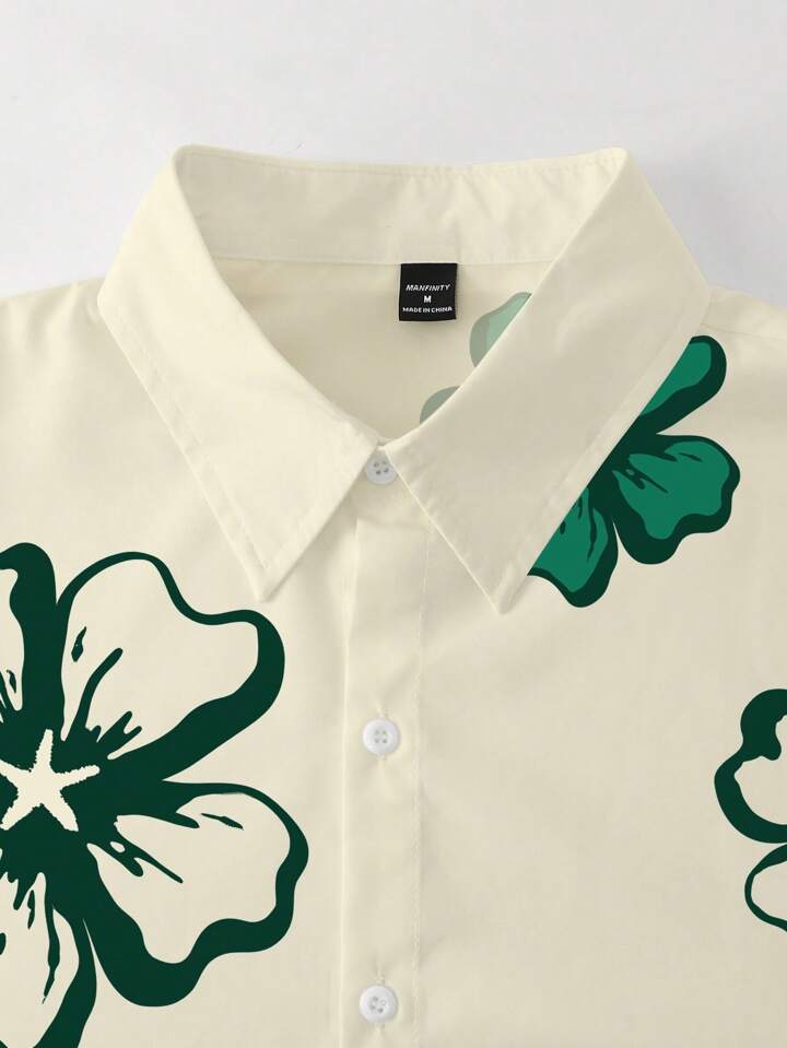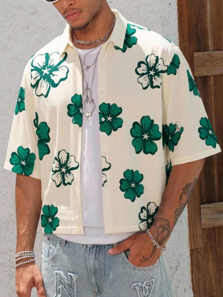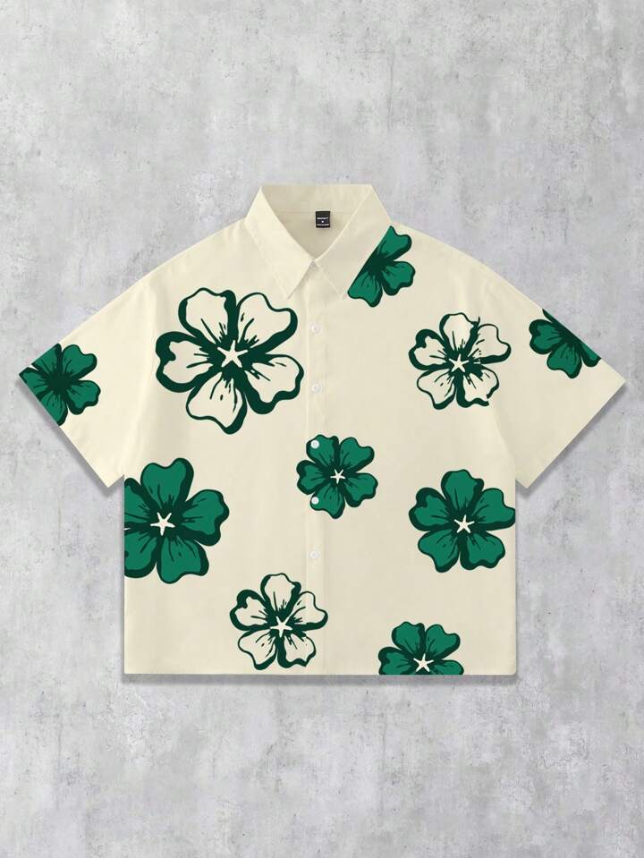 Men's Summer Floral Print Casual Short Sleeve Single Breasted Shirt