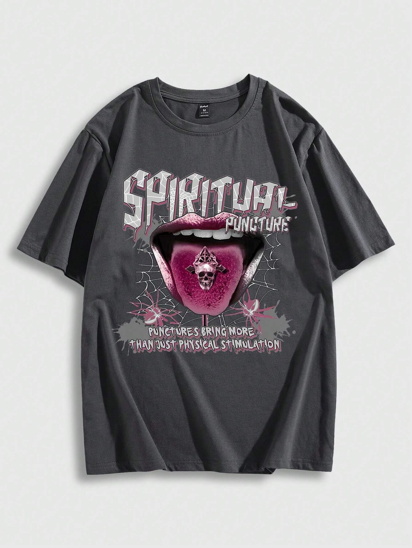 Men's Summer Lips & Slogan Printed Round Neck Short Sleeve Casual T-Shirt