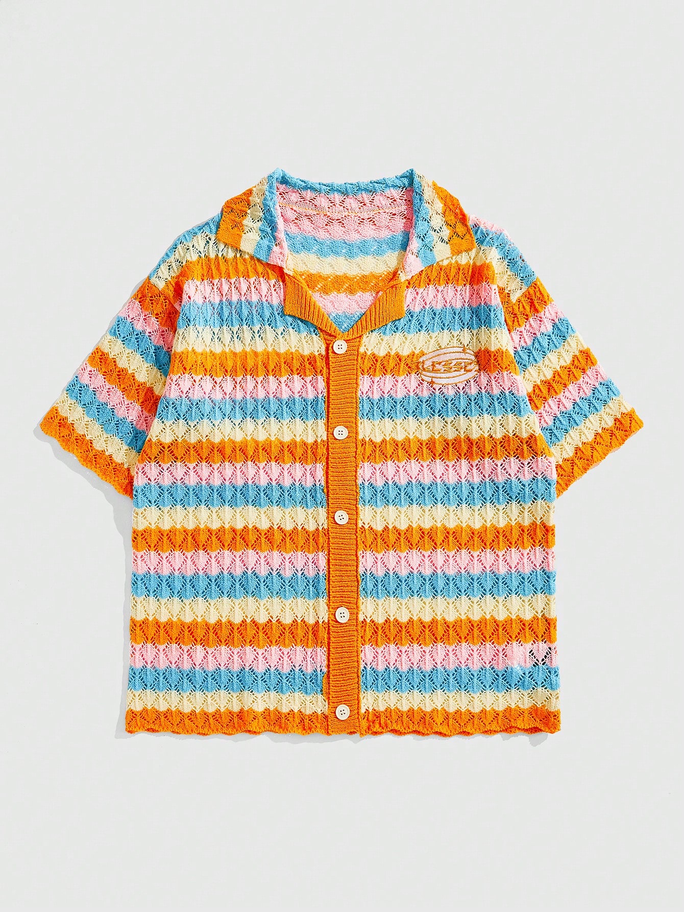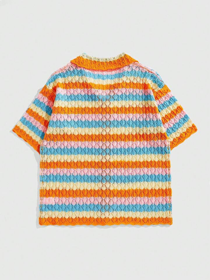 Men's Vacation Loose Knit Button-Down Shirt, Short Sleeve Top