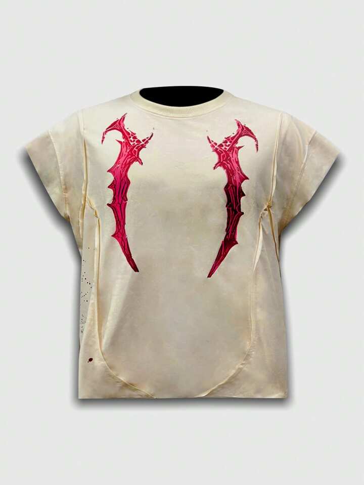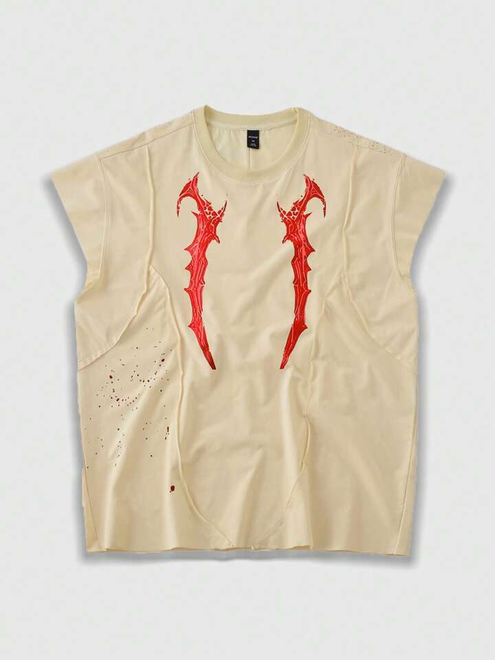 Men's Washed Anime Boxy Fit Casual Mixed Print Patchwork Sleeveless Vest