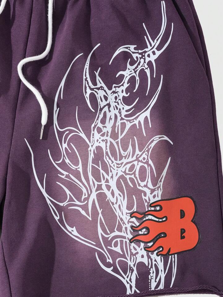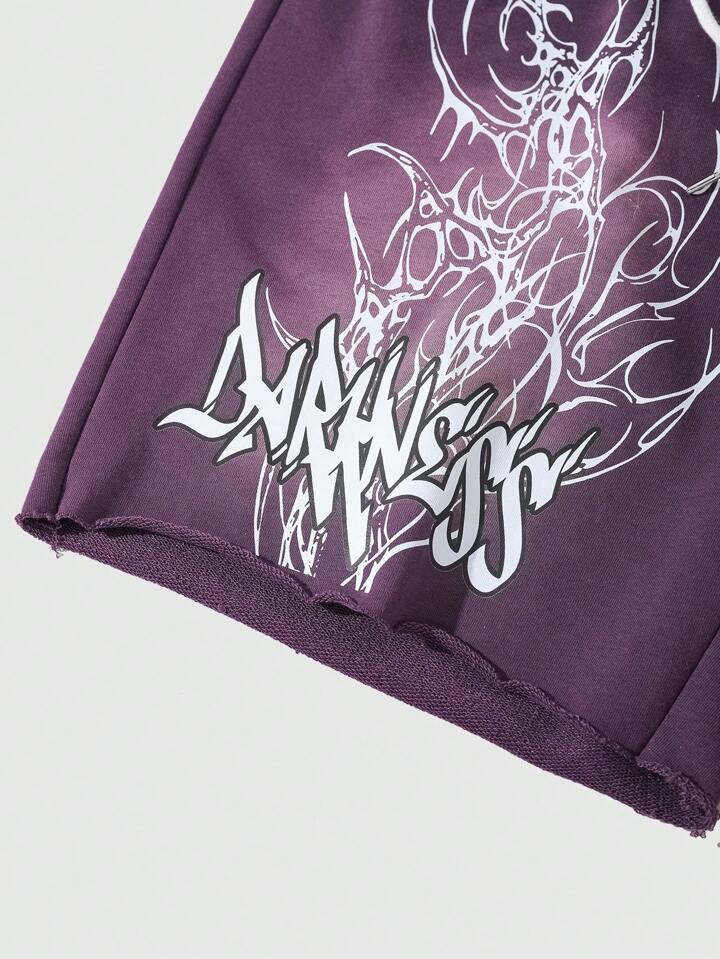 Men's Washed Casual Gothic Print Drawstring Waist Shorts, Halloween
