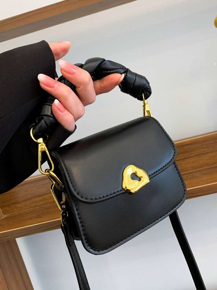 Mini Flap Square Bag Metal Decor PU Braided Handle