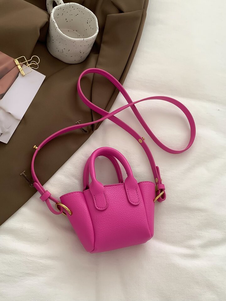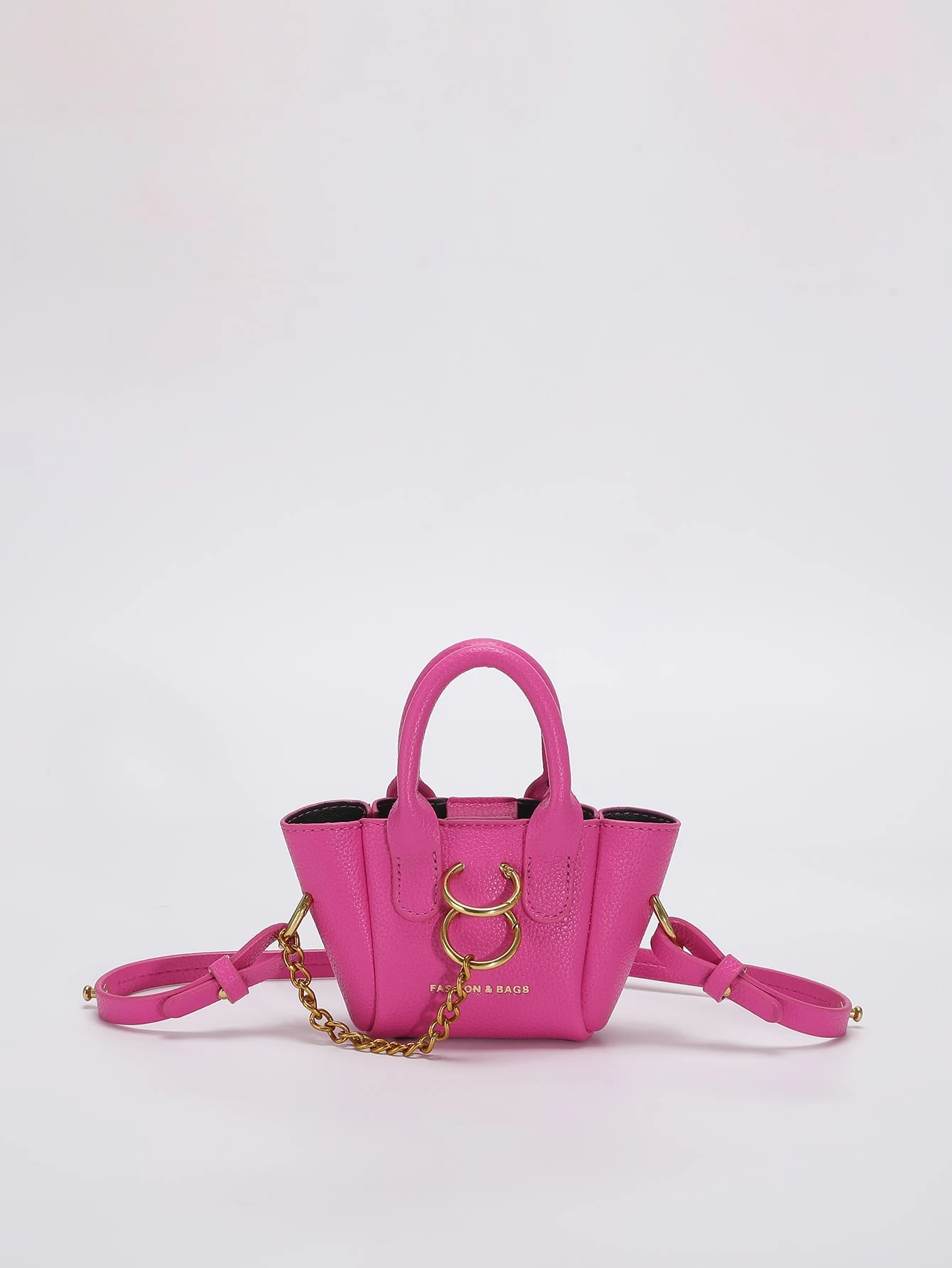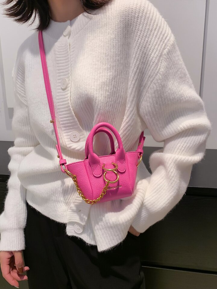 Mini Litchi Embossed Letter Detail Chain Decor Square Bag