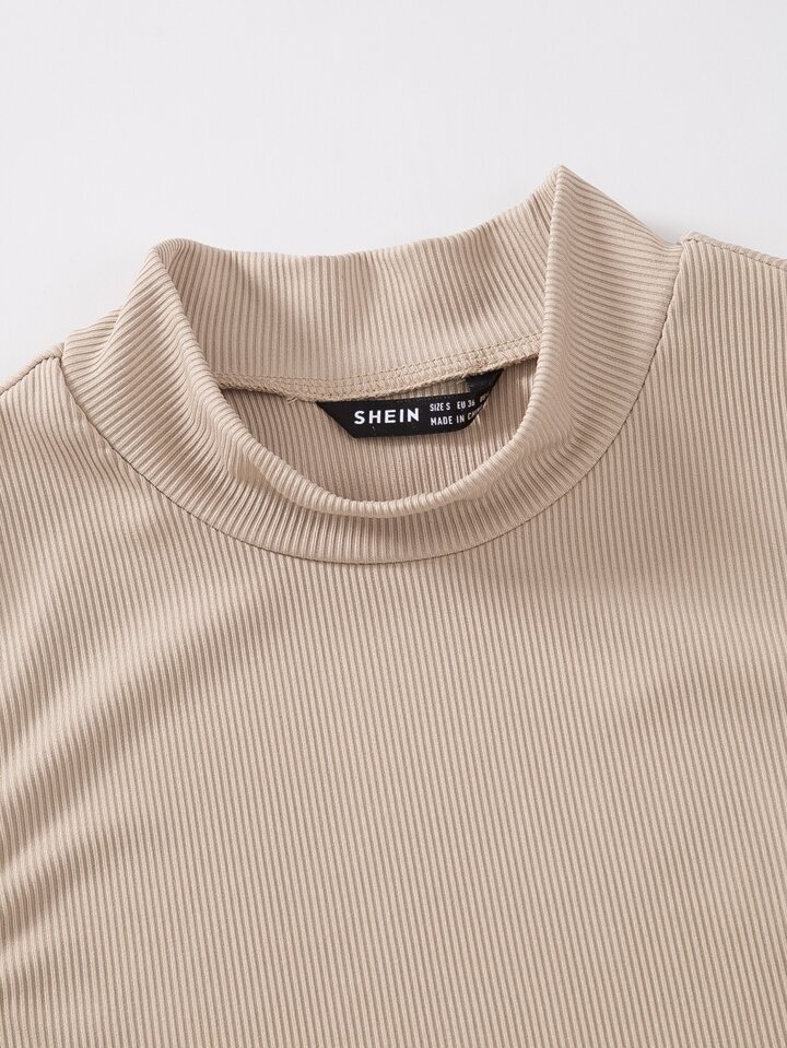 Mock Neck Rib-knit Tank Top Without Necklace