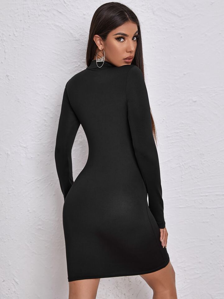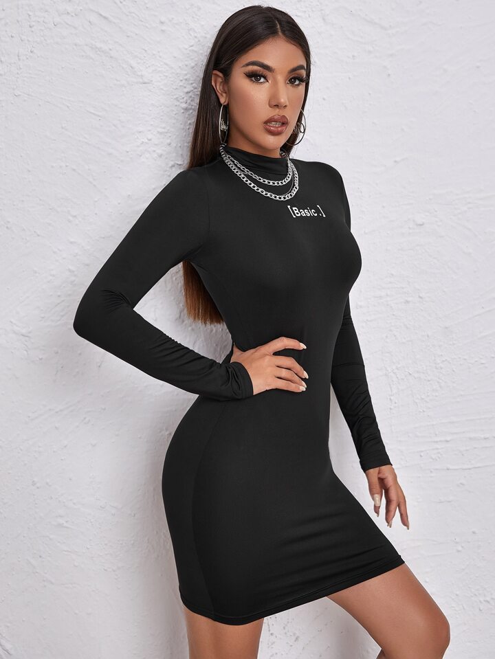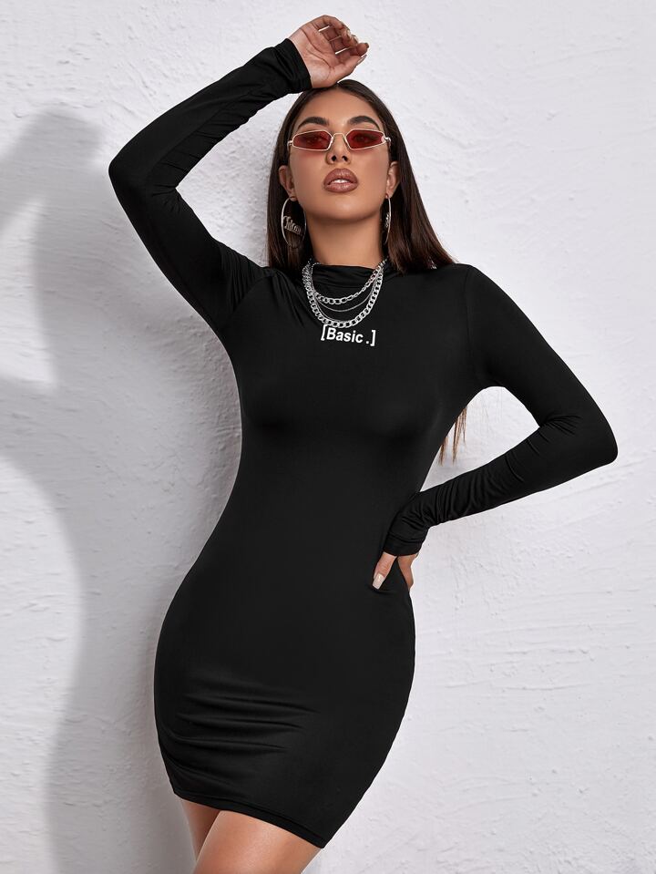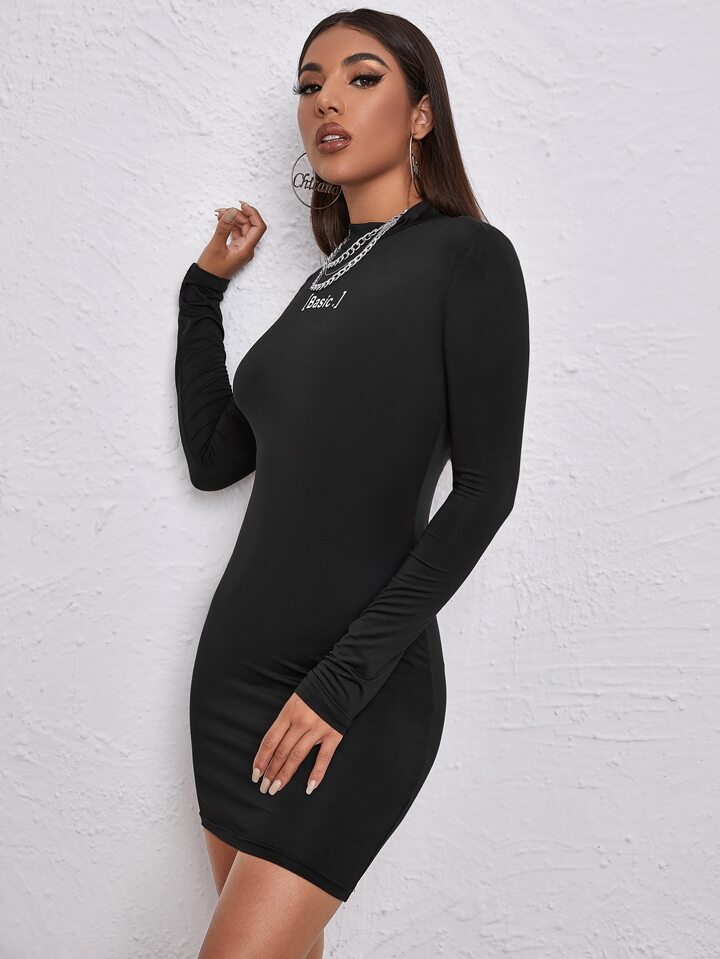 Mock-neck Letter Graphic Bodycon Dress