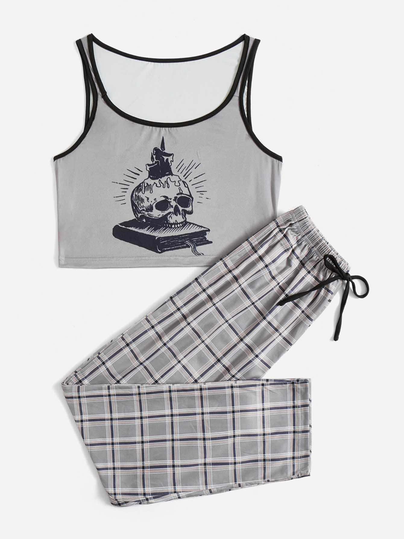 Mountain Vintage Press Skull Graphic Contrast Binding PJ Set