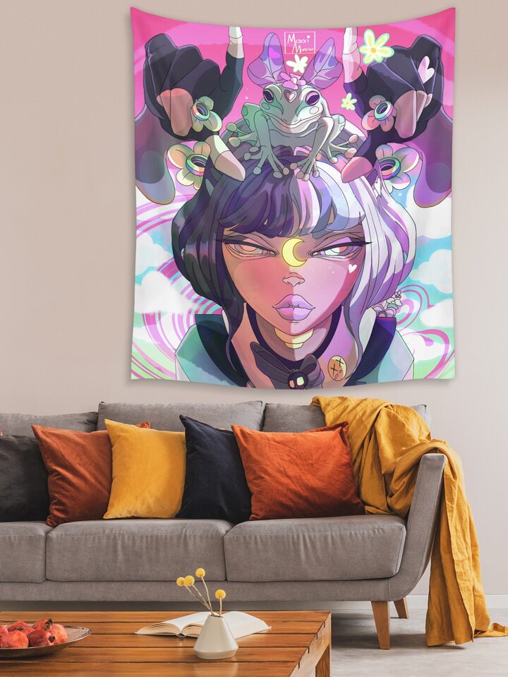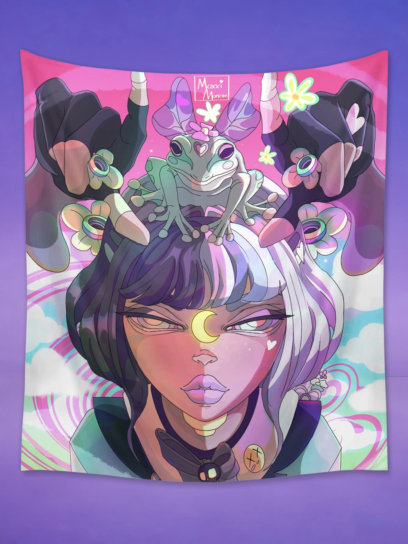 Moxxi Monroe Cyber Luvr Cartoon Figure & Frog Print Tapestry
