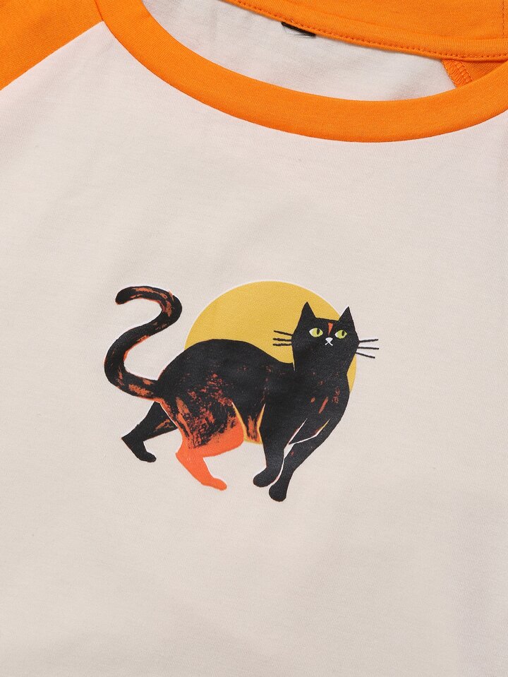 Mrnmrn1117 Cat Graphic Colorblock Crop Tee