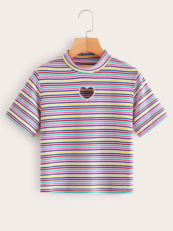 Multi-stripe Stand Collar Ribbed Tee