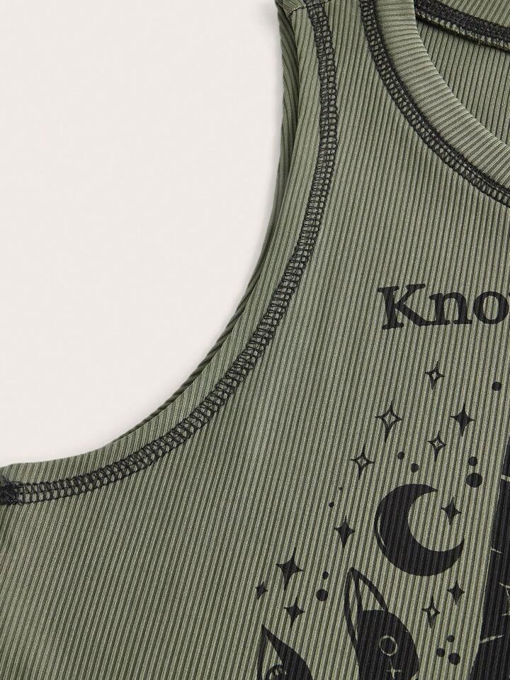 Mystic heart Letter Hand Graphic Ribbed Tank Top