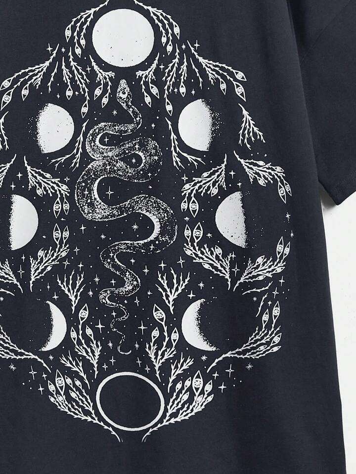 Mystic heart Moon & Snake Print Tee