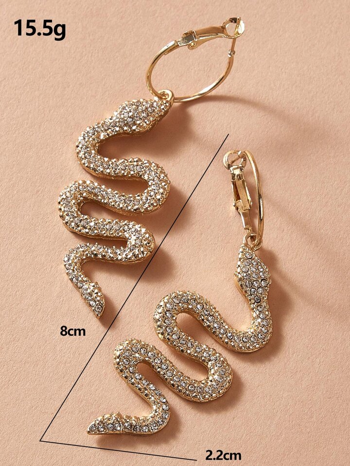 NAIZHU 1pair Rhinestone Decor Serpentine Drop Earrings