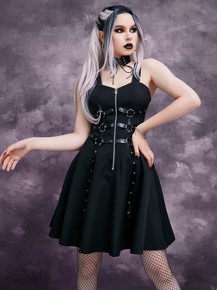 O-ring Strap Half Zipper Cami Dress