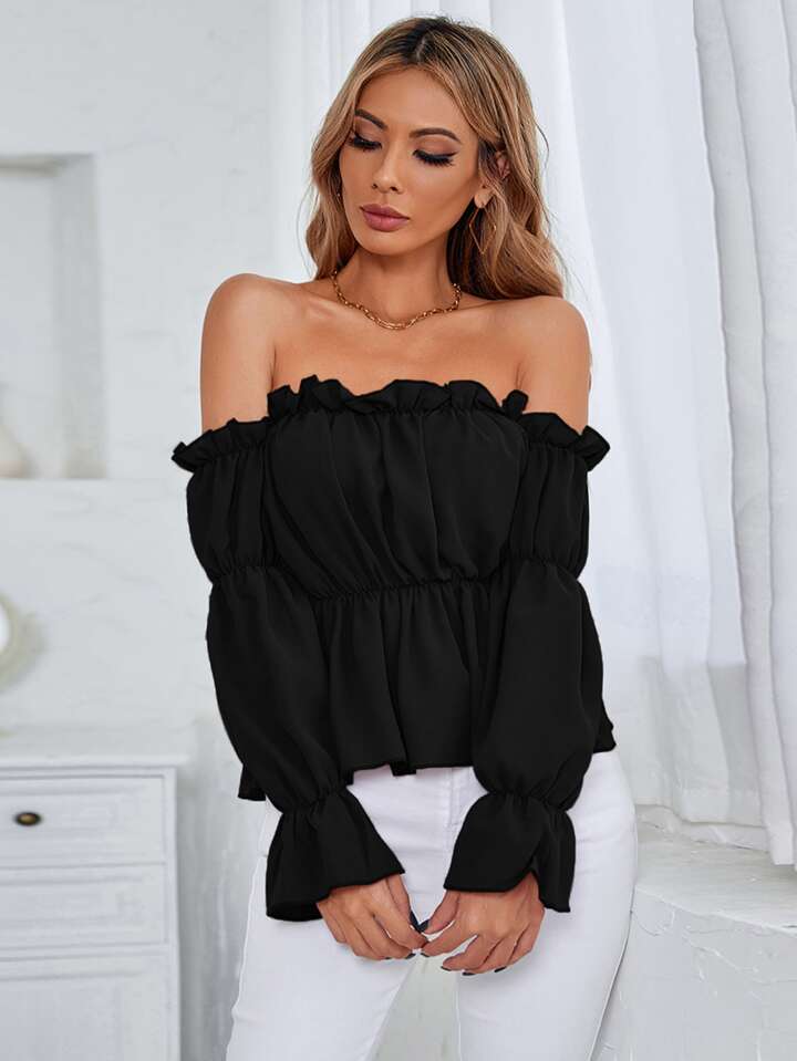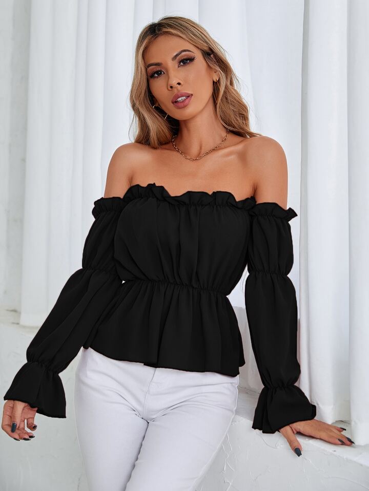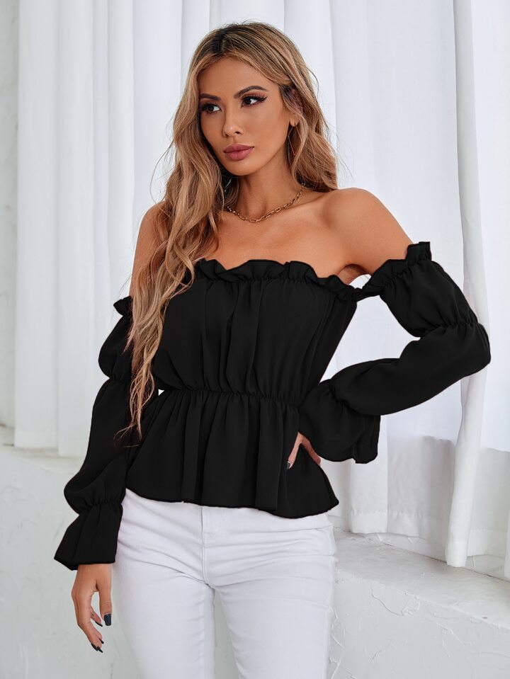 Off Shoulder Gathered Sleeve Peplum Blouse Peplum Top