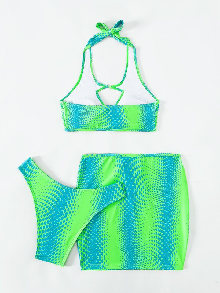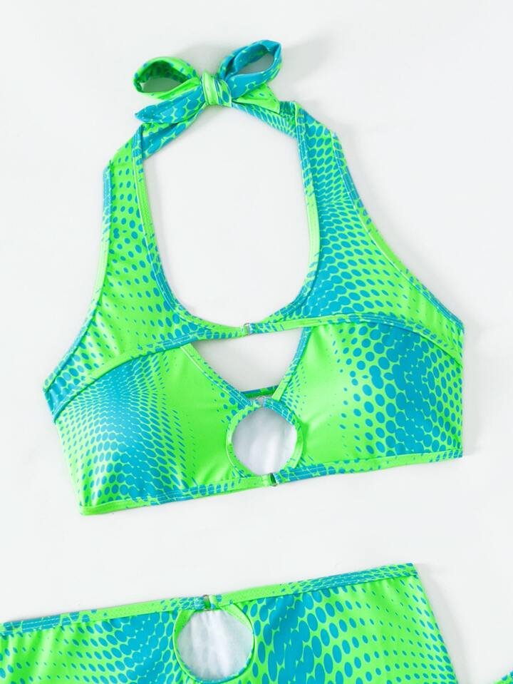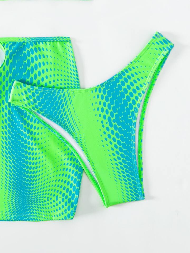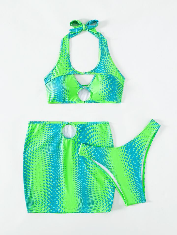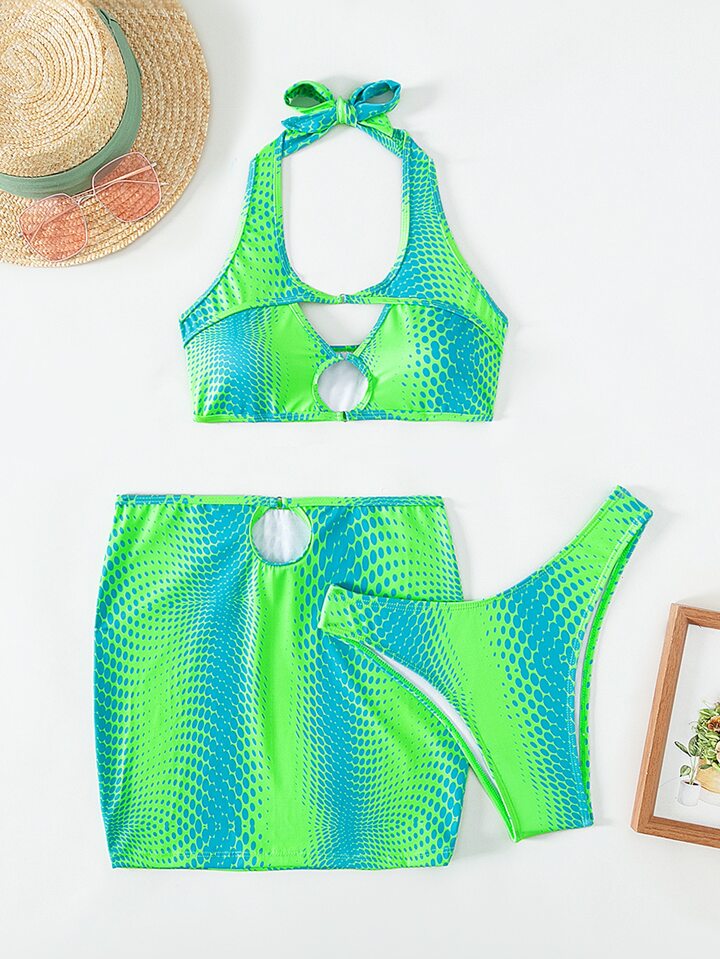 Ombre Cut-Out Summer Beach Bikini Set With Beach Skirt