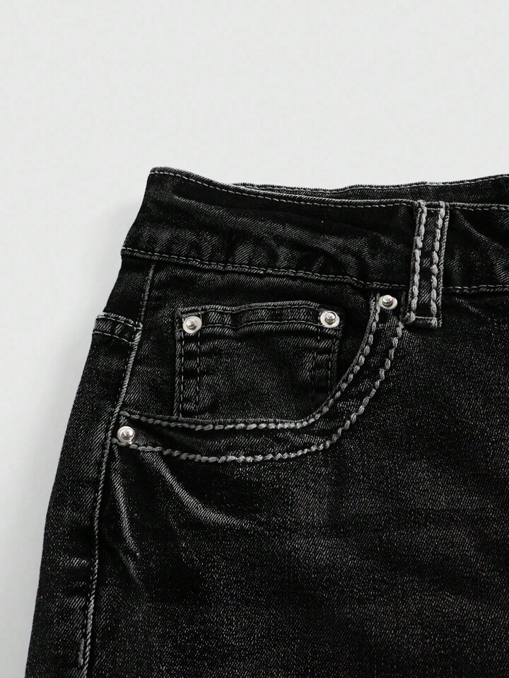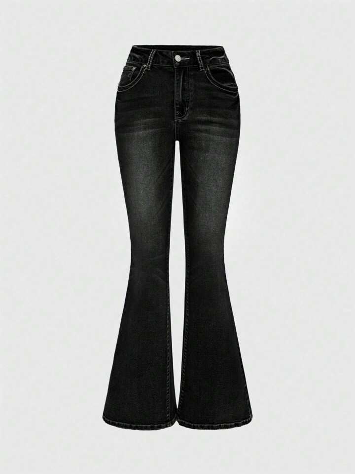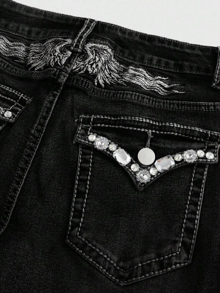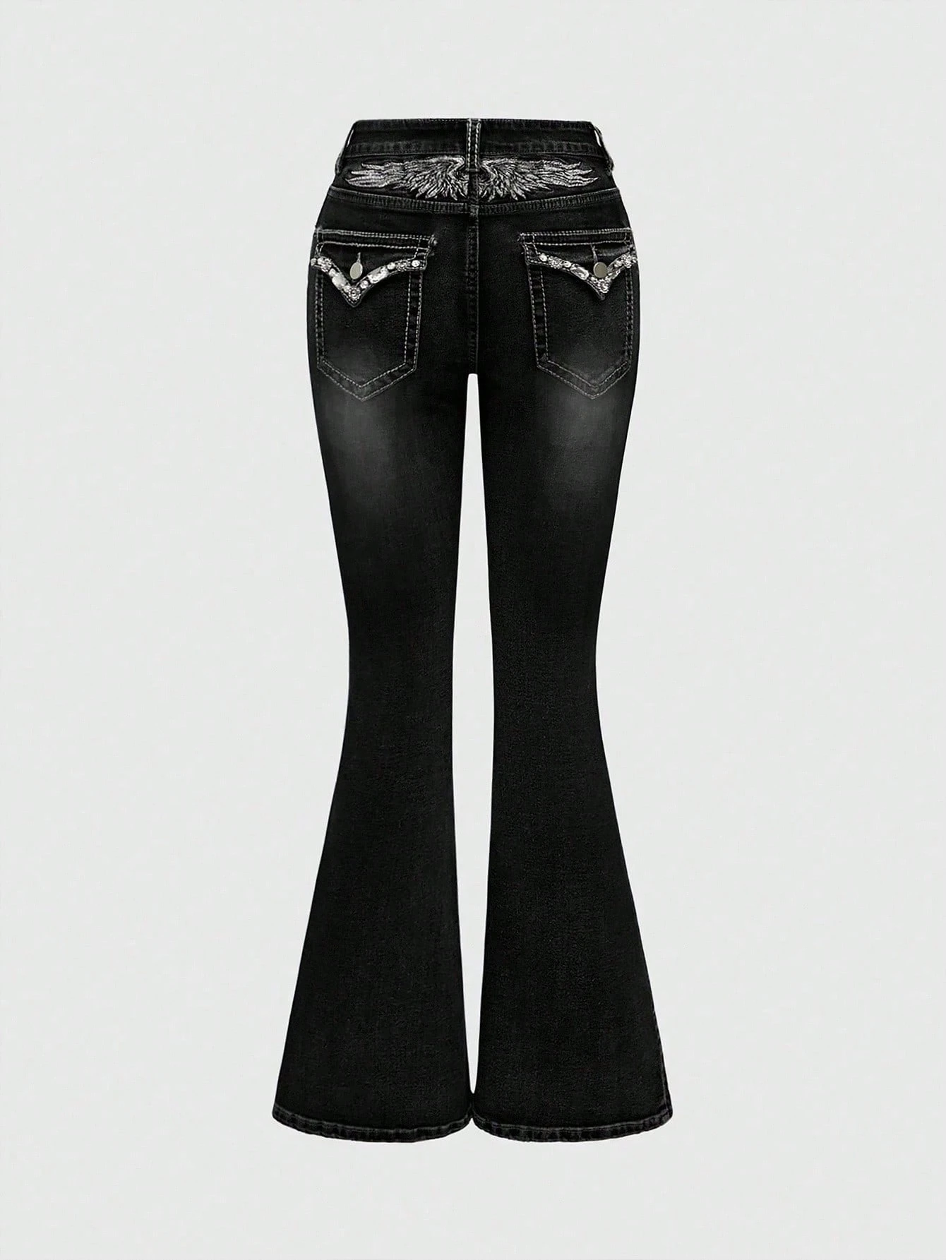 PETITE Women's Casual Flare Rhinestone Wing Embroidered Low Waist Jeans