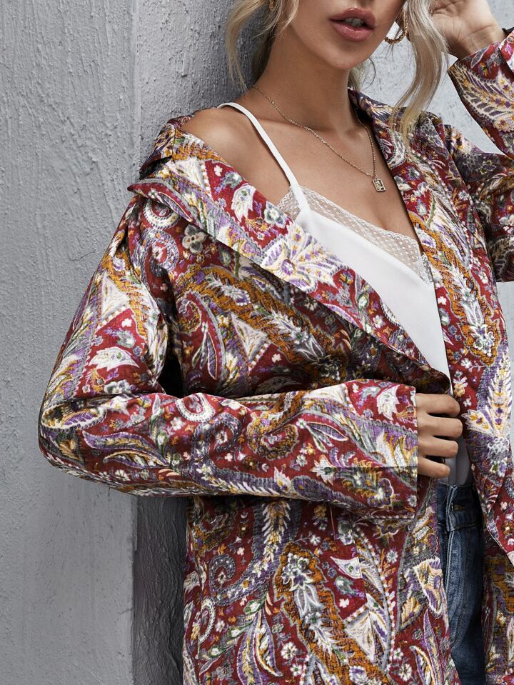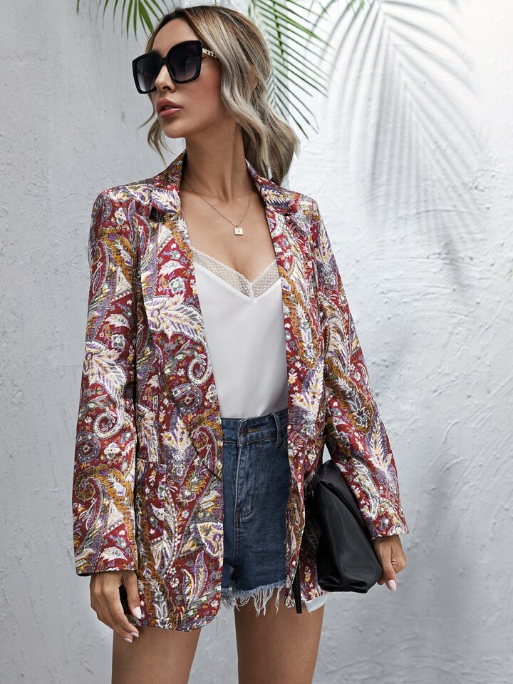 Paisley And Floral Print Lapel Collar Blazer