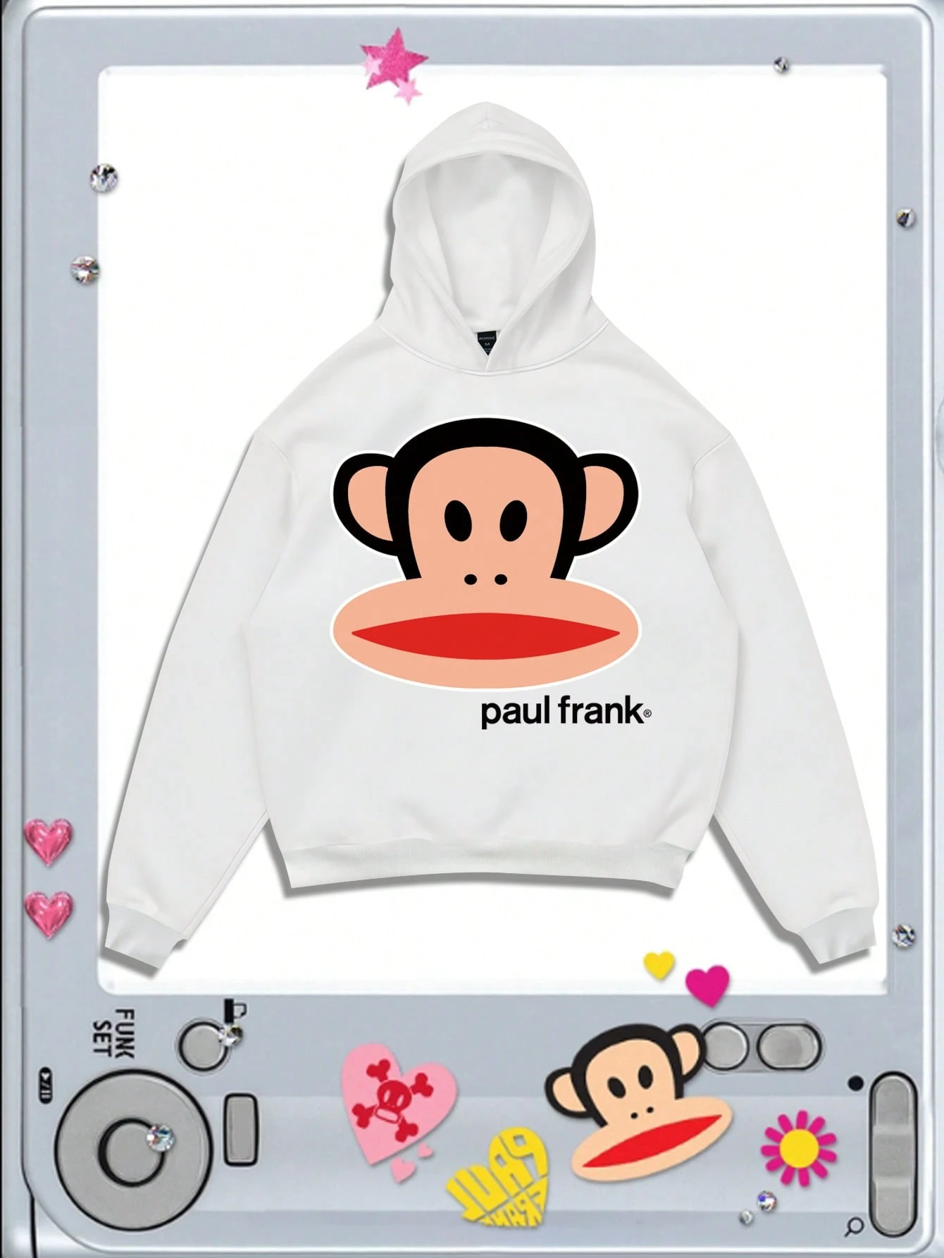 Paul Frank X ROMWE Men's Fashionable Street Hoodie With Cartoon Monkey And Letter Graphic, White, Spring/Autumn