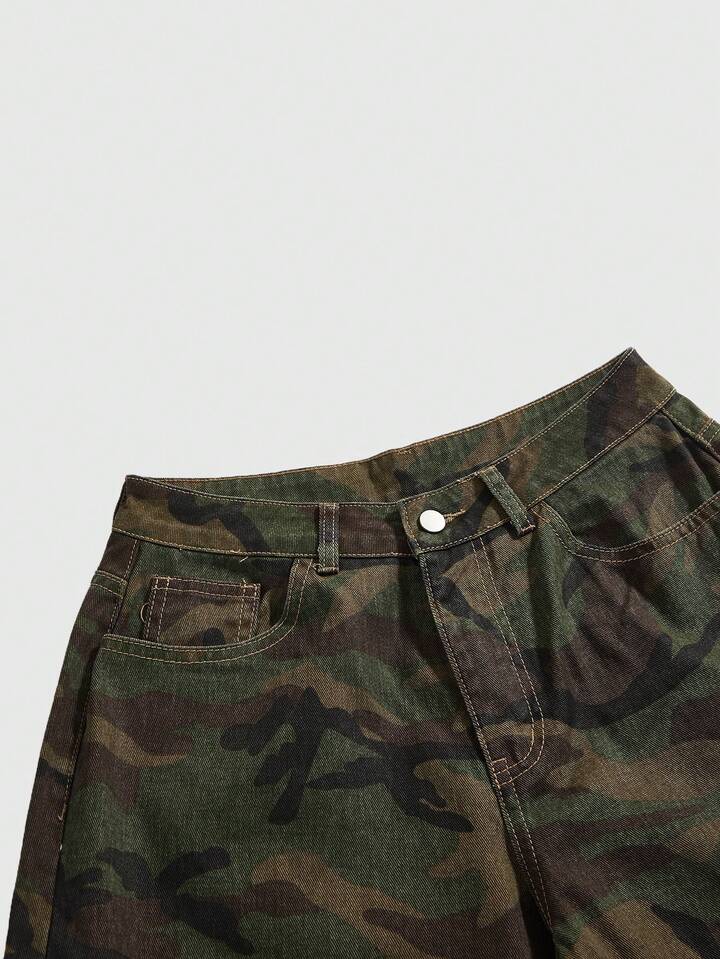 Paul Frank X ROMWE Y2K Streetwear Embroidered Baggy Camouflage Loose Fit Jeans