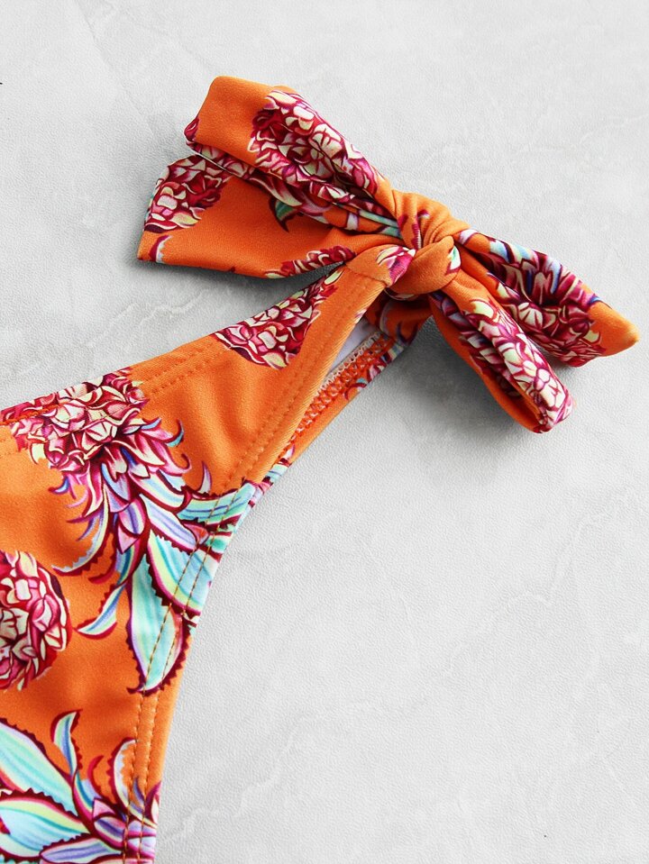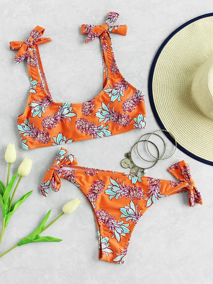 Pineapple Print Tie Shoulder And Side Bikini Set