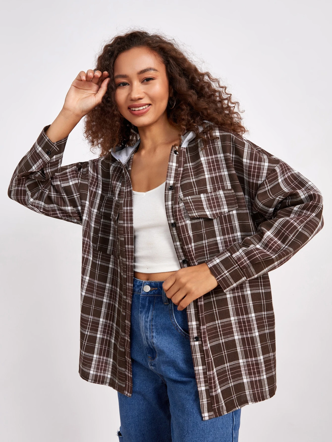 Plaid Button Front Pocket Shirt