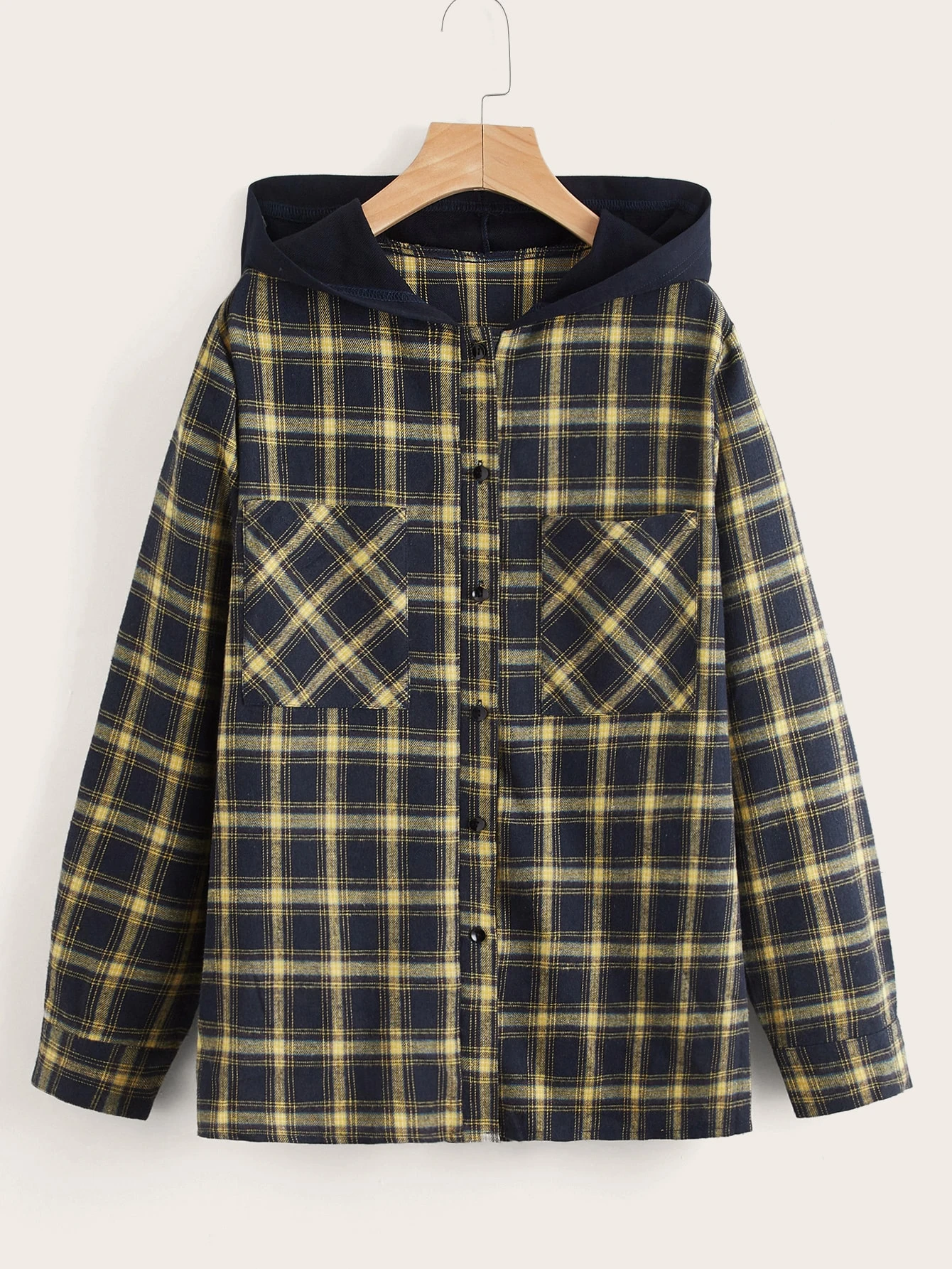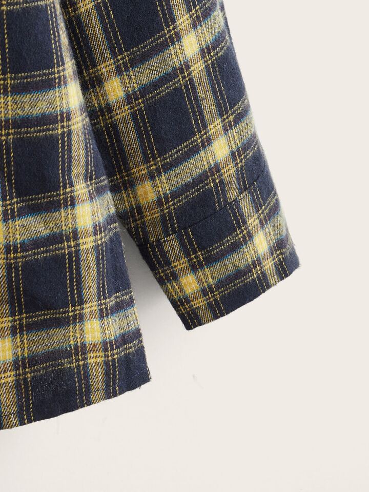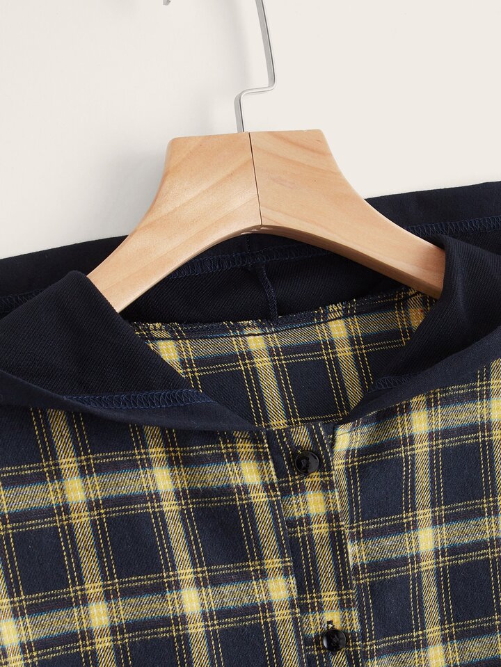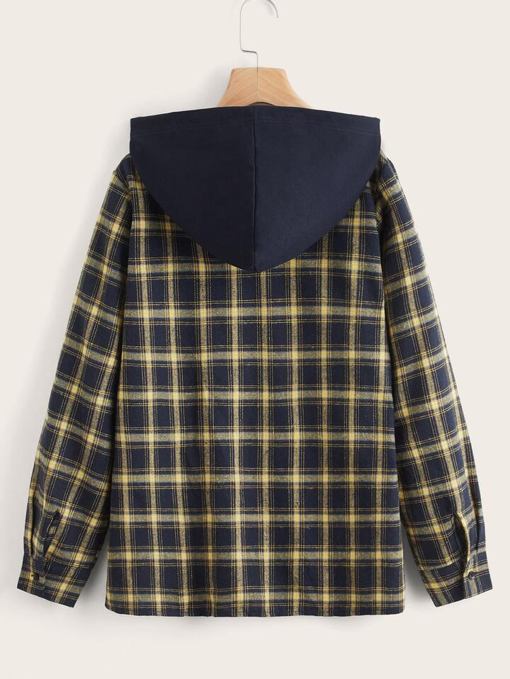 Plaid Print Hooded Blouse