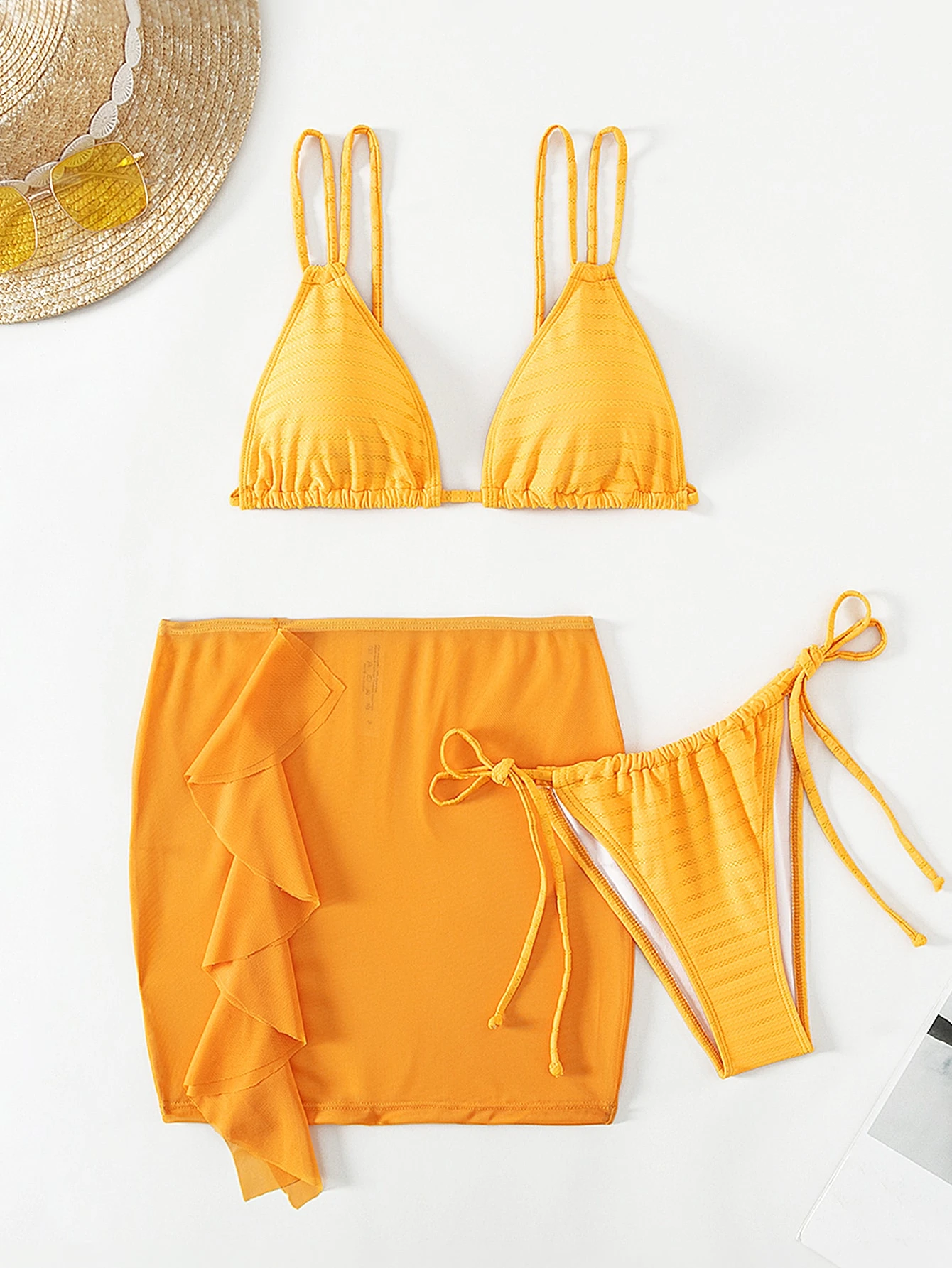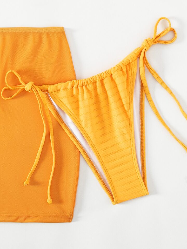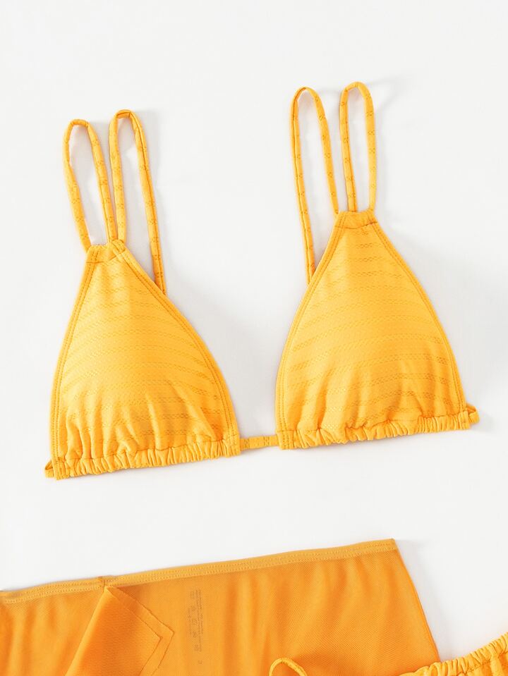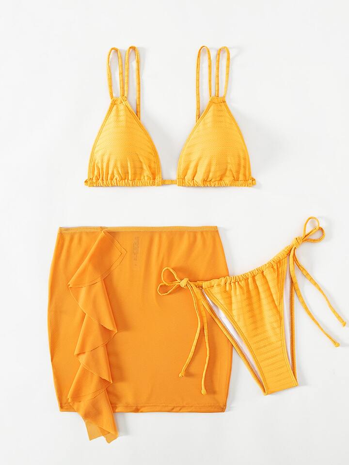 Plain Triangle Summer Beach Bikini Set With Beach Skirt