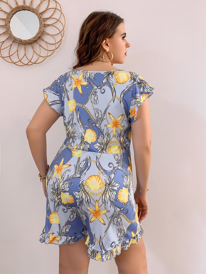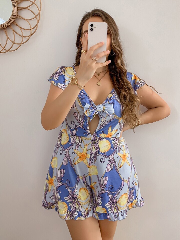 Plus Allover Print Cut Out Romper