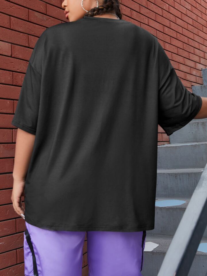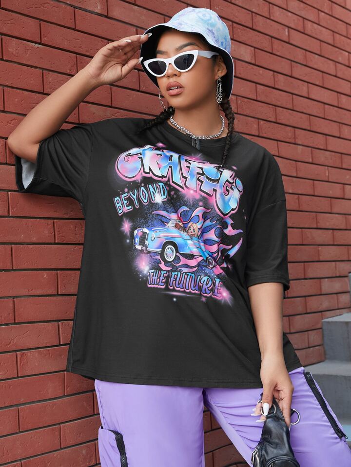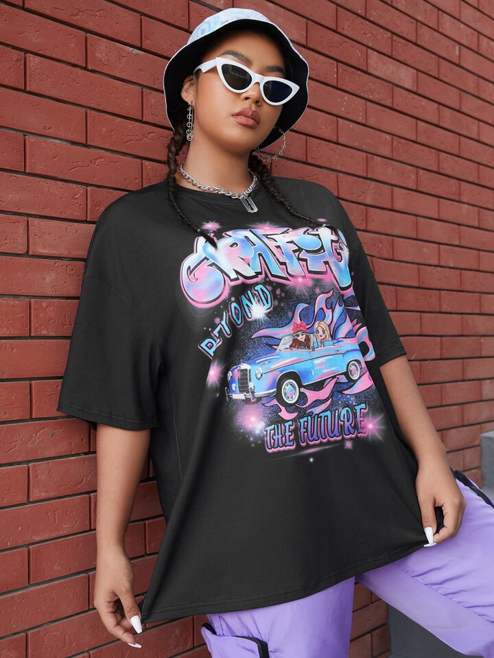 Plus Bikercore Letter & Car Graphic Drop Shoulder Tee