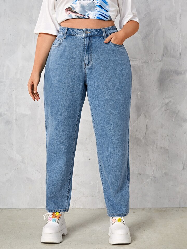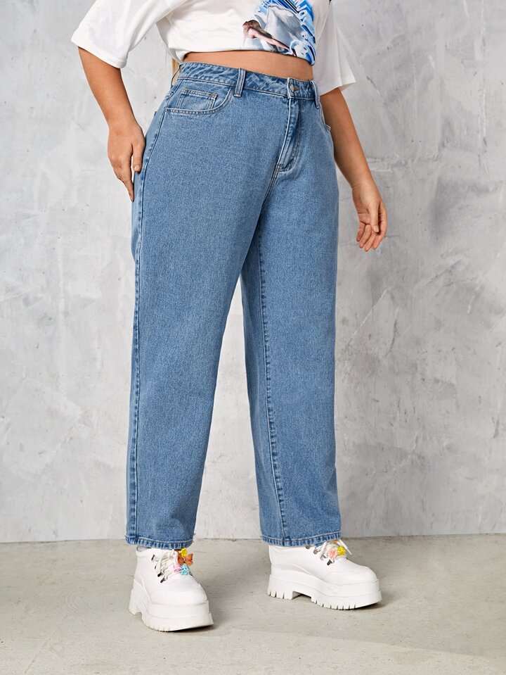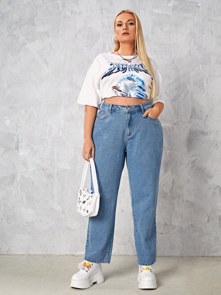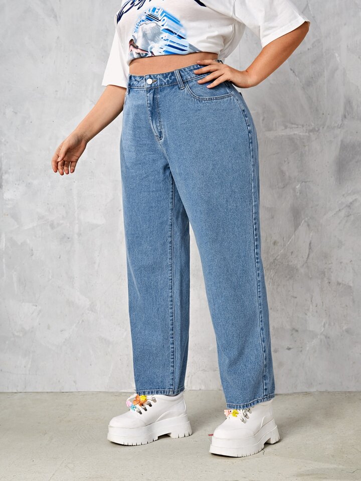 Plus Butterfly Embroidery Slant Pockets Jeans