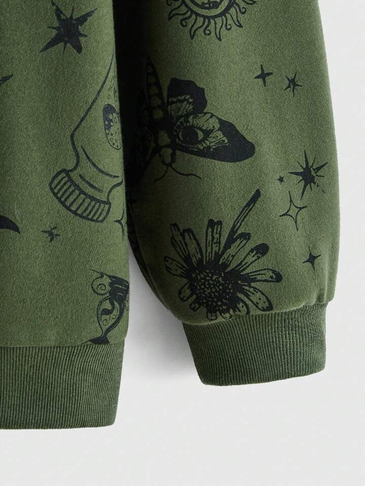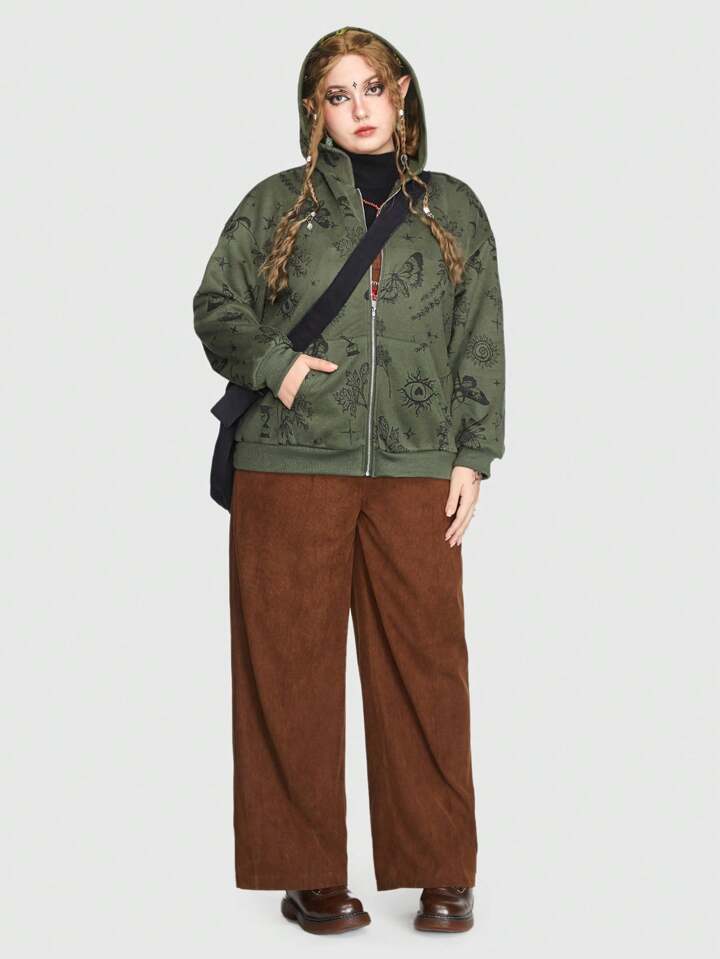 Plus Butterfly Print Zip Up Drop Shoulder Sweatshirt
