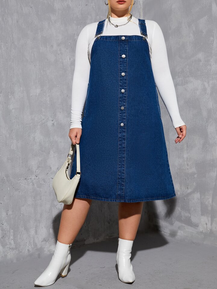 Plus Button Front Denim Overall Dress Without Tee