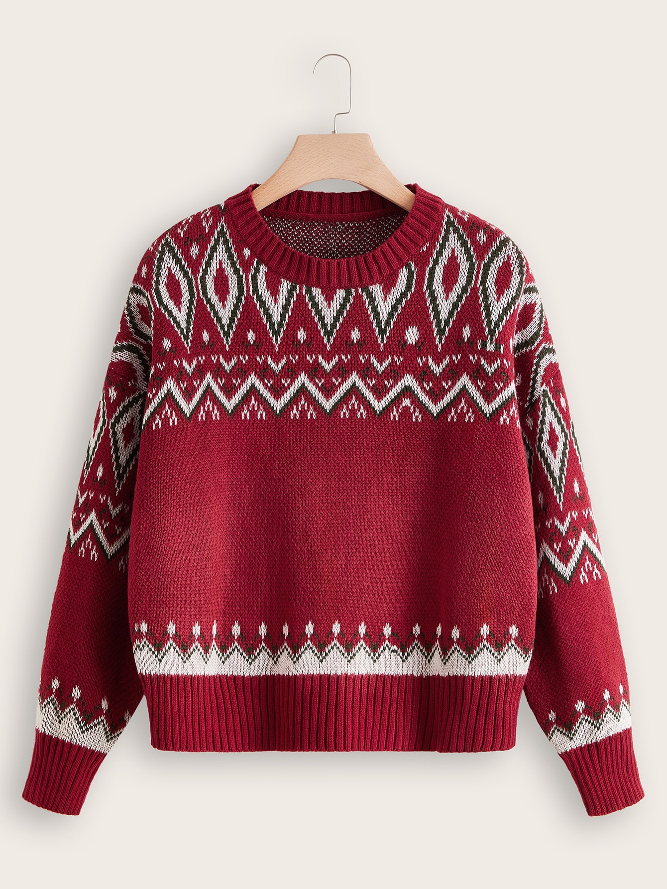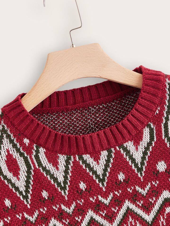 Plus Chevron & Argyle Pattern Drop Shoulder Sweater