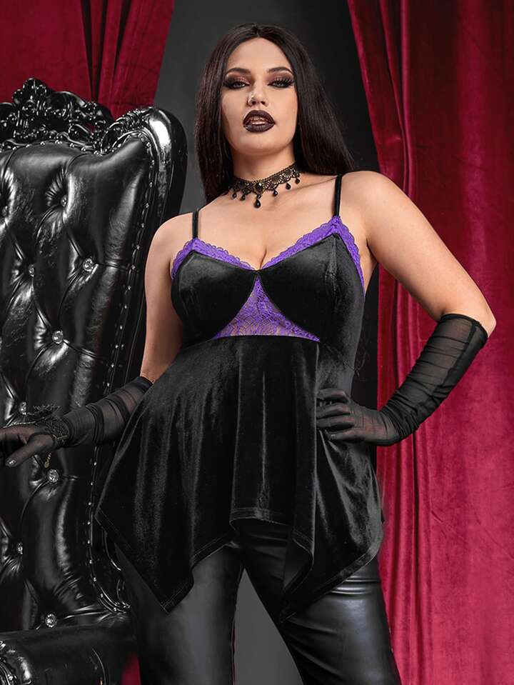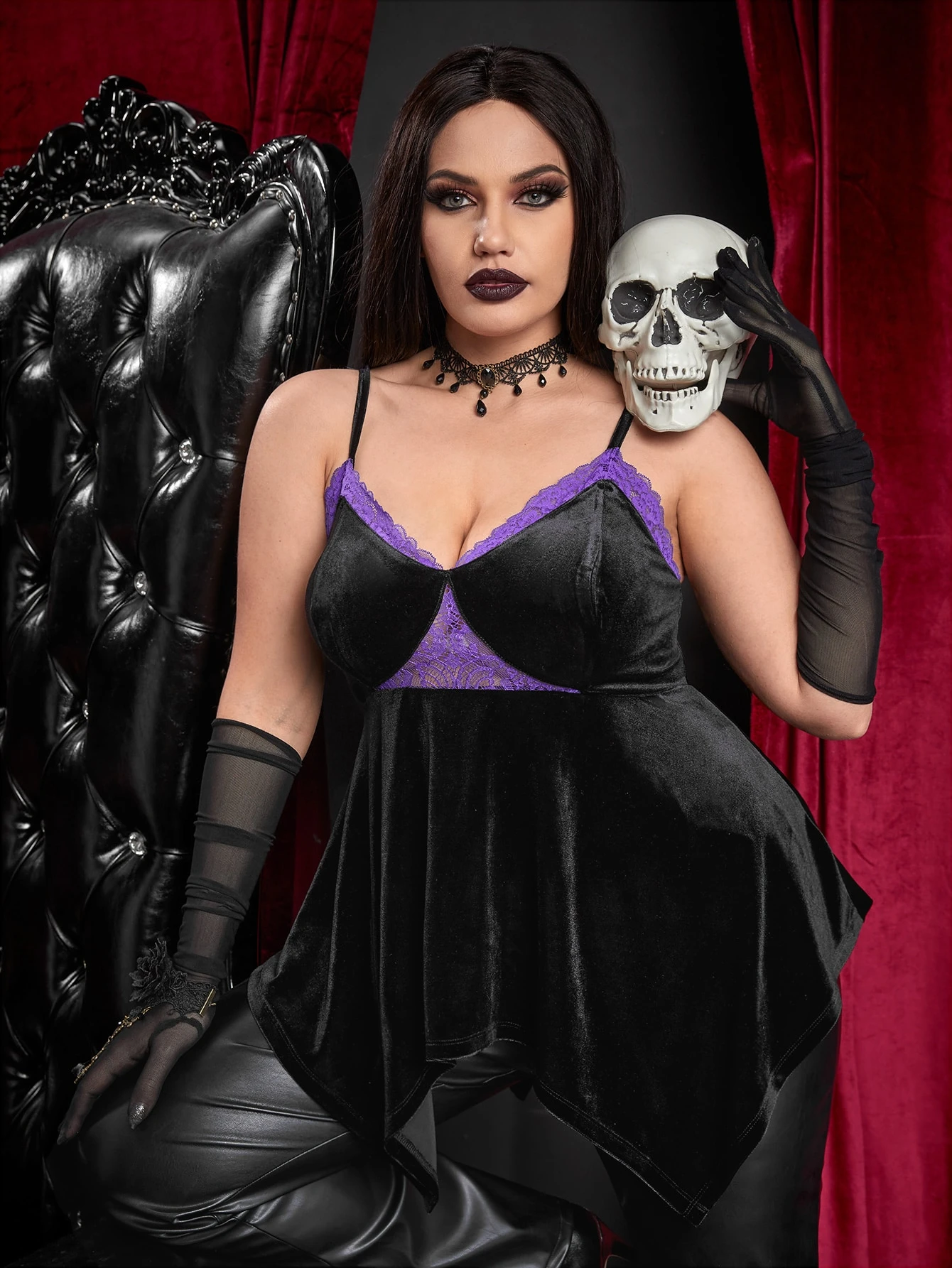 Plus Contrast Lace Asymmetrical Hem Velvet Cami Top