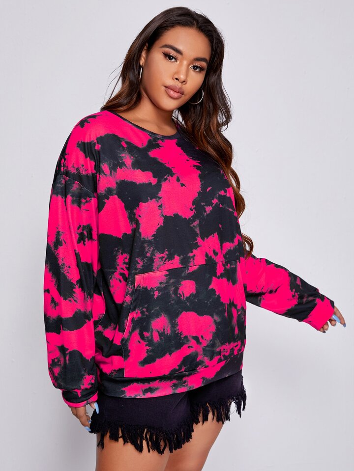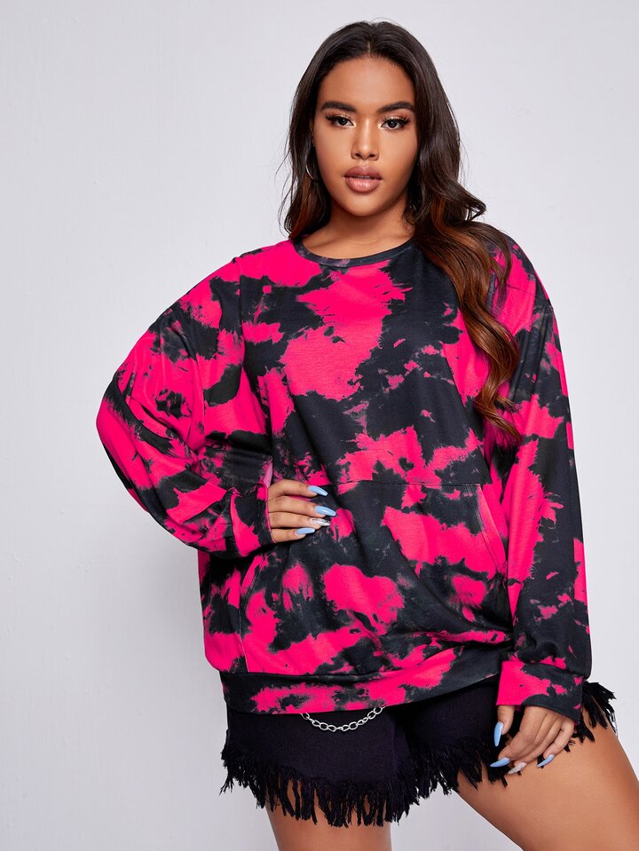 Plus Drop Shoulder Patch Pocket Tie Dye Pullover