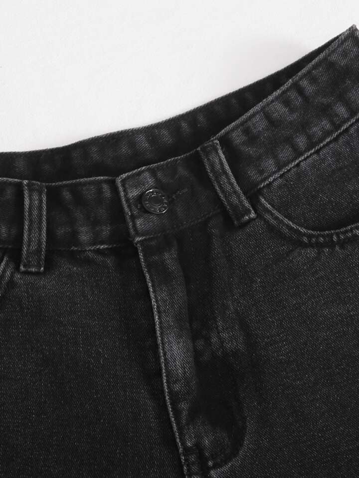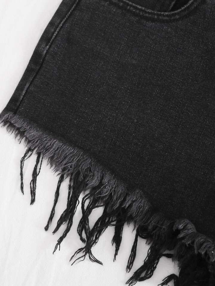 Plus Fire Embroidery Raw Hem Denim Shorts