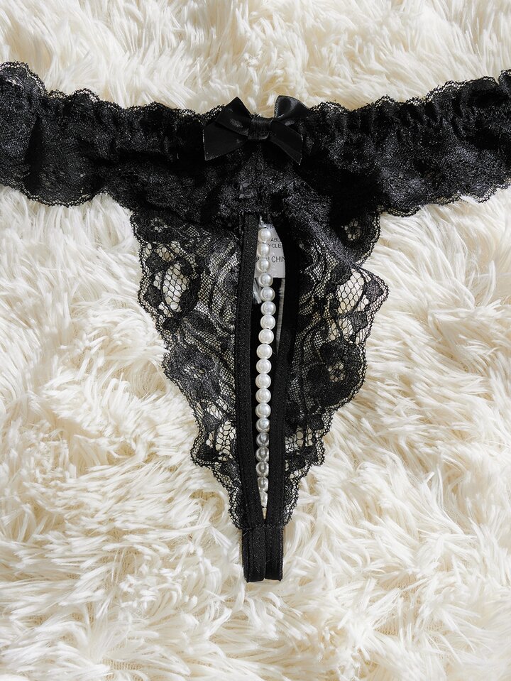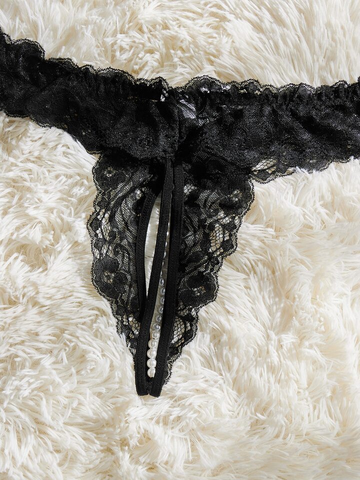 Plus Floral Lace Crotchless Thong, Open Crotch Thong