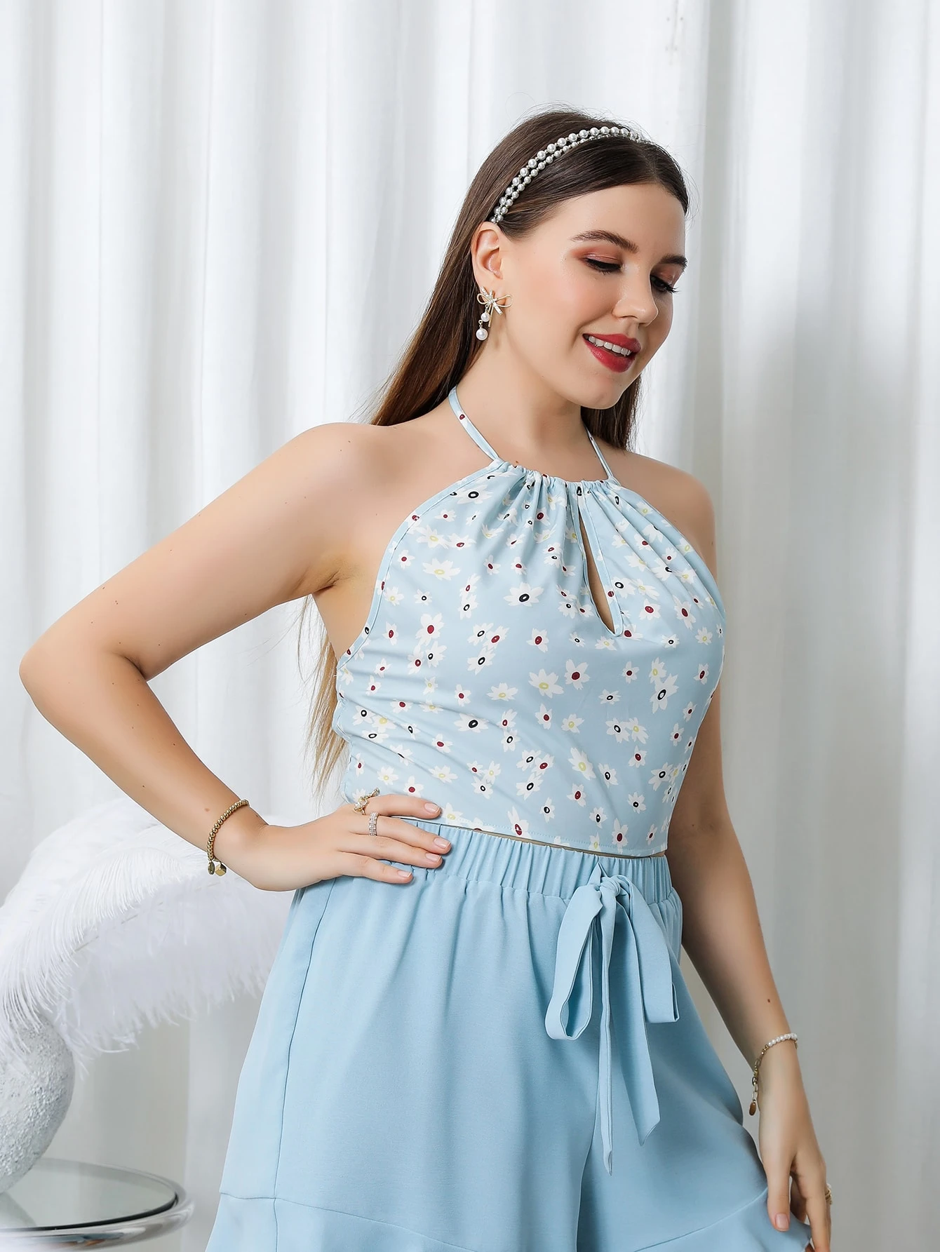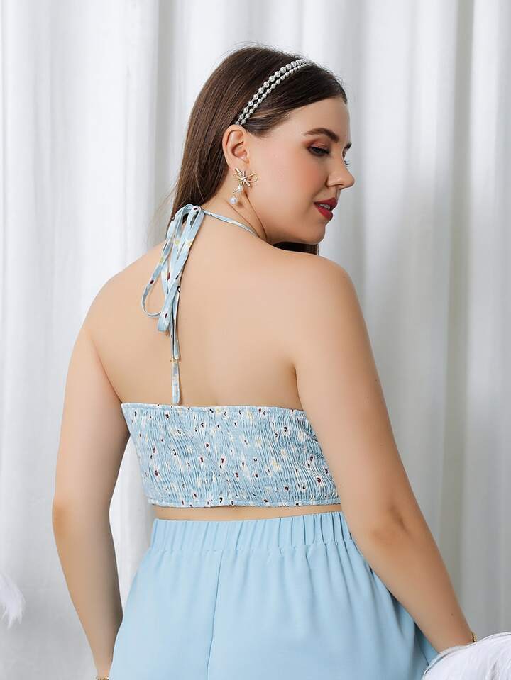 Plus Floral Print Halter Top