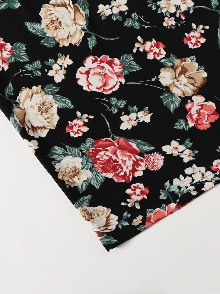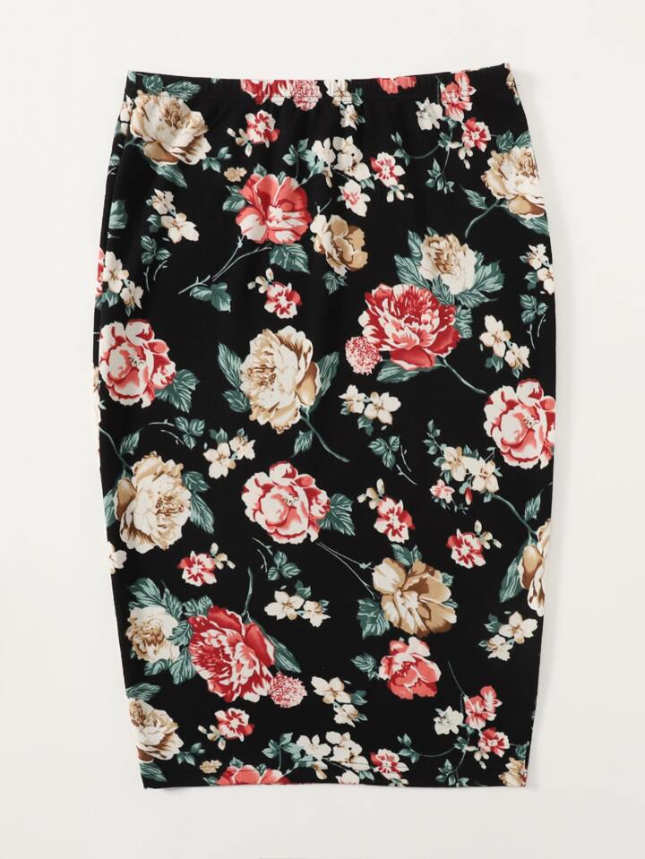 Plus Floral Print Pencil Skirt