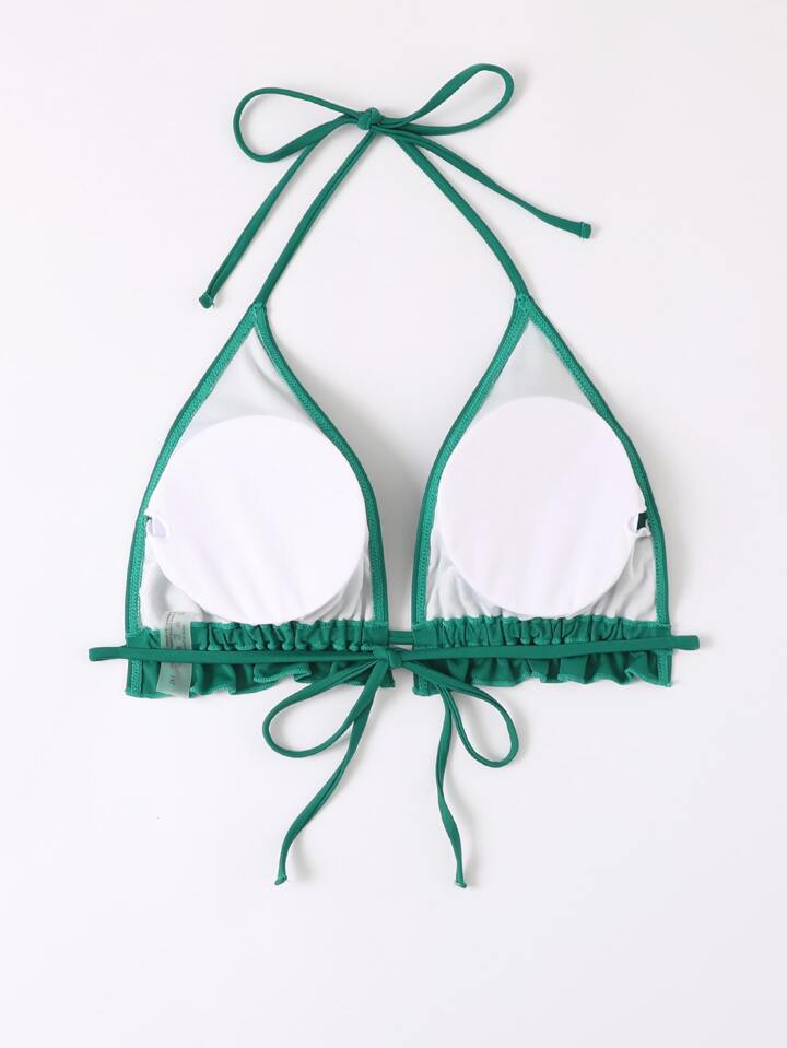 Plus Frill Trim Halter Triangle Bikini Top, For Summer Beach Vacation