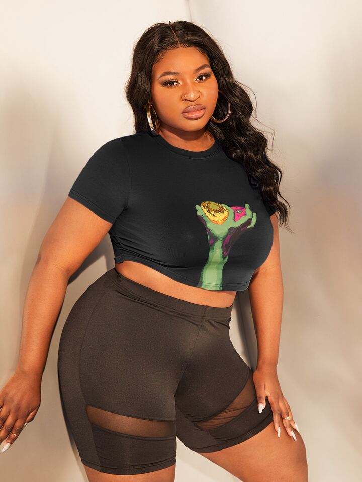 Plus Hand Print Crop Top