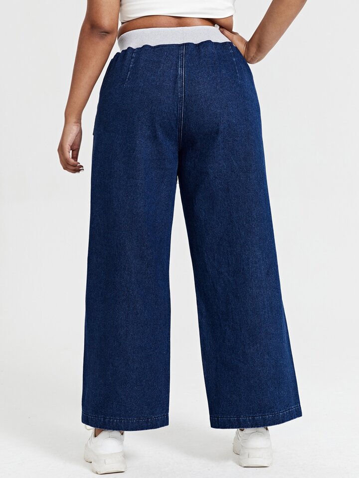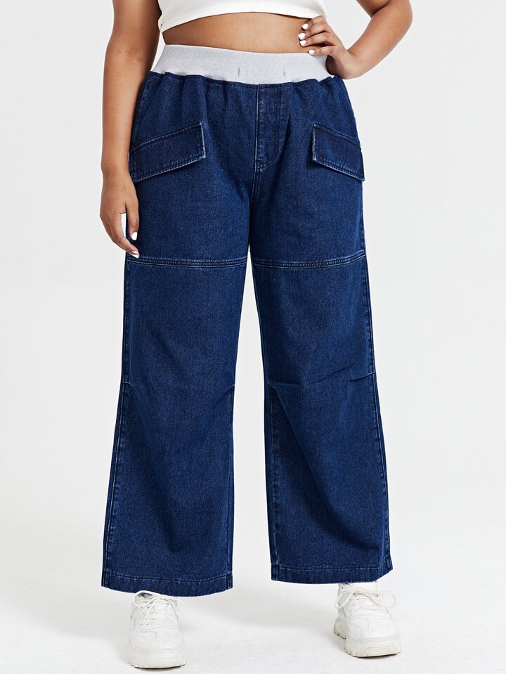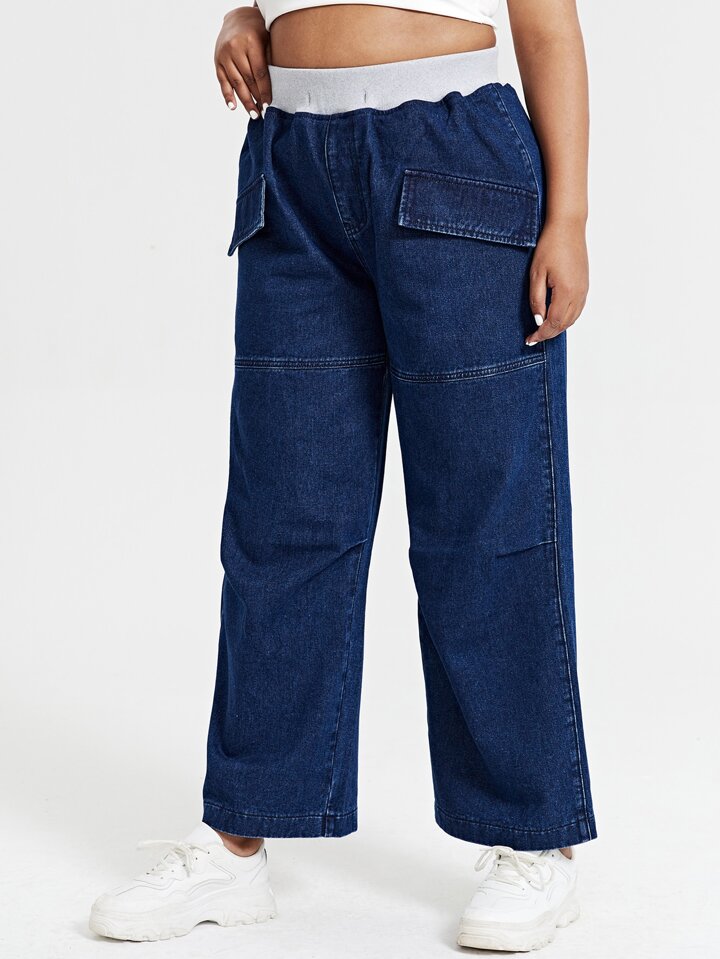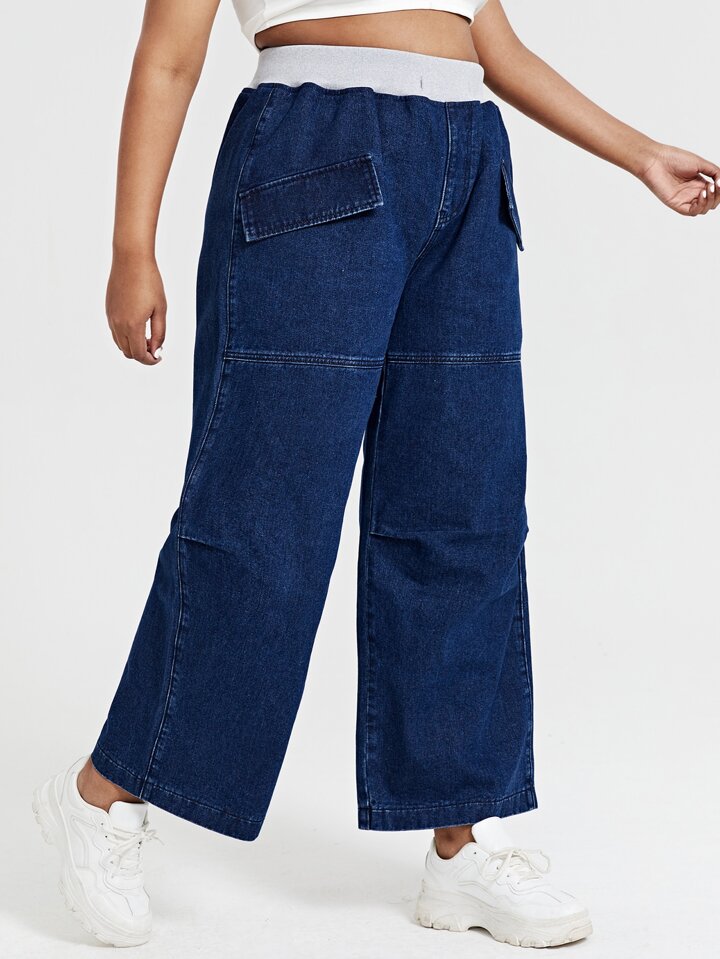 Plus High Waist Flap Detail Wide Leg Jeans