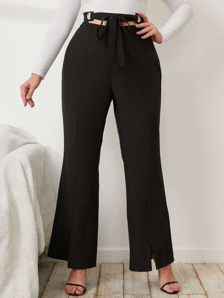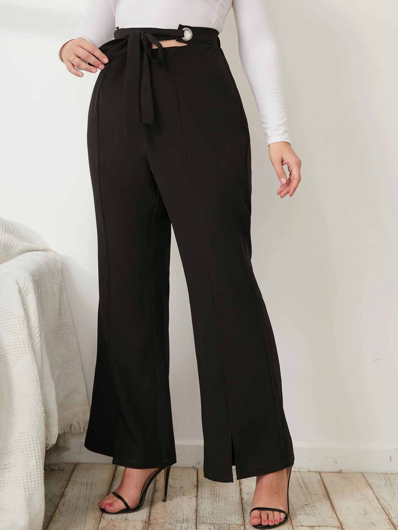 Plus High Waist Knot Front Split Hem Flare Leg Pants